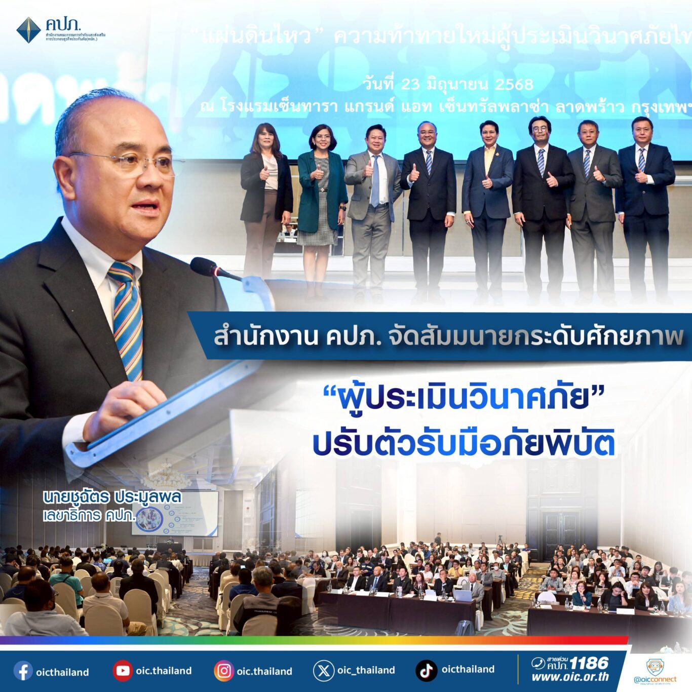 เลขาธิการ คปภ. เปิดงานสัมมนาผู้ประเมินวินาศภัย ปี 2568 ภายใต้ธีม “แผ่นดินไหว ความท้าทายใหม่ ผู้ประเมินวินาศภัยไทย” หวังยกระดับศักยภาพ “ผู้ประเมินวินาศภัย” ปรับตัวรับมือกับภัยพิบัติในอนาคต ชี้การประเมินวินาศภัย เป็นขั้นตอนสำคัญในการชดใช้ค่าสินไหมทดแทนอย่างเหมาะสม เป็นธรรม และได้มาตรฐาน