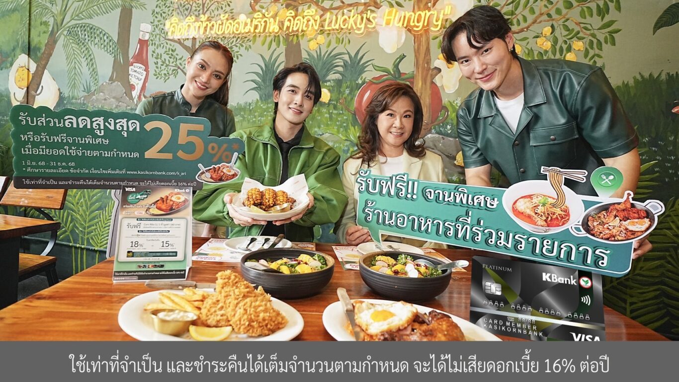 • รับส่วนลดสูงสุด 25%* หรือรับฟรี!! จานพิเศษ เพียงใช้จ่ายด้วยบัตรเครดิตกสิกรไทยกับร้านอาหาร คาเฟ่ ขนม ที่ร่วมรายการ
