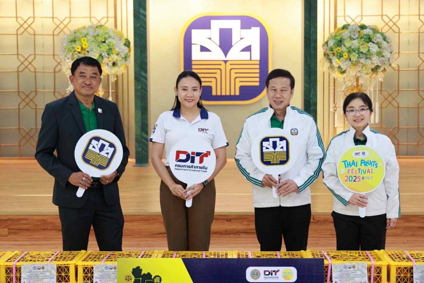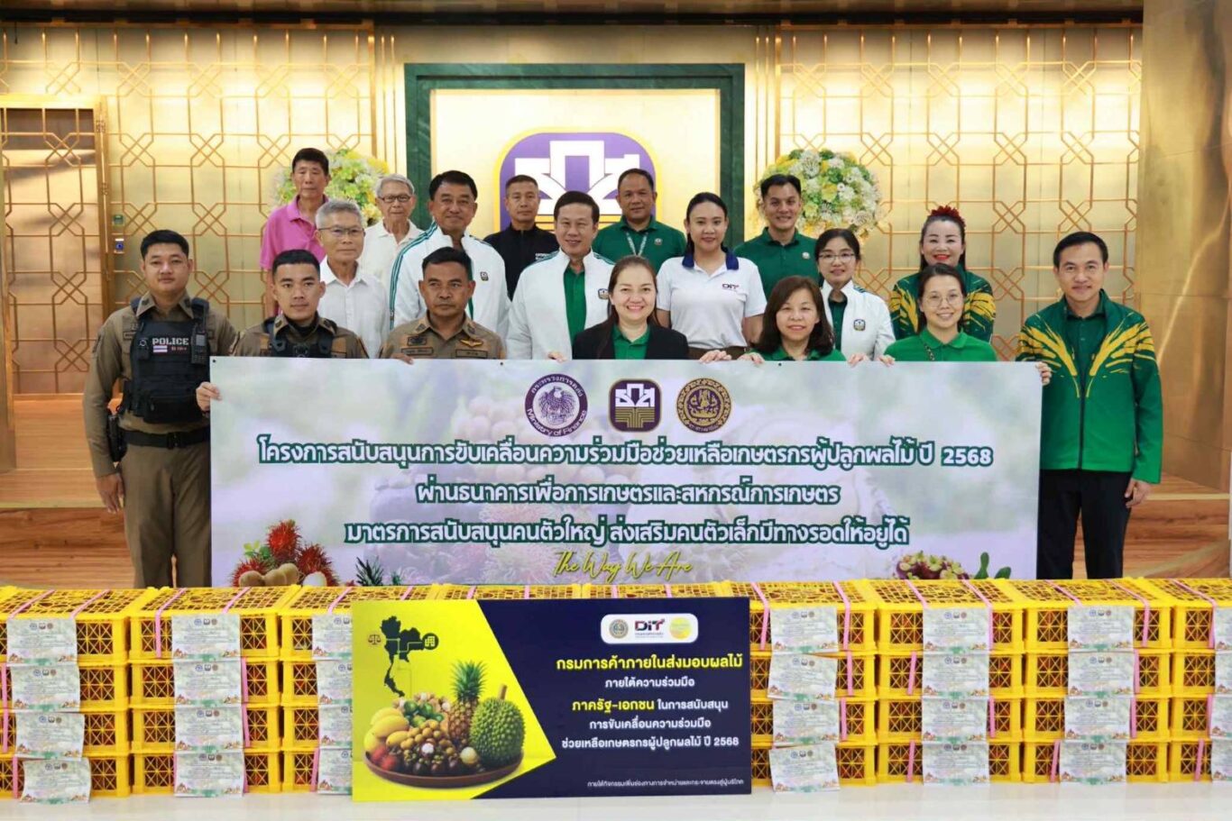 นายณรงค์ ขันติวิริยะกุล รองผู้จัดการ ธนาคารเพื่อการเกษตรและสหกรณ์การเกษตร (ธ.ก.ส.) นางสาวไข่มุก จูงใจจารุมาศ ผู้ช่วยผู้จัดการ ธ.ก.ส. และ นายณะที ไกรลพ ผู้ช่วยผู้จัดการ ธ.ก.ส. ร่วมรับมอบเงาะ จาก นางสาวญาณี ศรีมณี รองอธิบดีกรมการค้าภายใน กระทรวงพาณิชย์ จำนวนทั้งสิ้น 2,000 กิโลกรัม ตามโครงการสนับสนุนการขับเคลื่อนความร่วมมือช่วยเหลือเกษตรกรผู้ปลูกผลไม้ ปี 2568 ตามมาตรการ “สนับสนุนคนตัวใหญ่ ส่งเสริมคนตัวเล็กมีทางรอดให้อยู่ได้” กระทรวงพาณิชย์ เพื่อดูดซับปริมาณผลผลิตในช่วงที่มีเงาะออกสู่ตลาดเป็นจำนวนมาก ส่งผลให้ราคาตกต่ำ