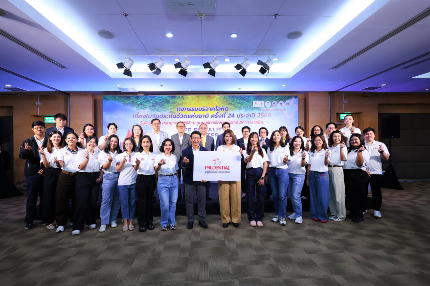 นายบัณฑิต เจียมอนุกูลกิจ (ที่ 9 จากซ้าย) ประธานเจ้าหน้าที่บริหาร บริษัท พรูเด็นเชียล ประกันชีวิต (ประเทศไทย) จำกัด (มหาชน) หรือ พรูเด็นเชียล ประเทศไทย นำคณะผู้บริหารและพนักงานจิตอาสา ร่วมกิจกรรมบริจาคโลหิต โดยกิจกรรมครั้งนี้ได้รับเกียรติจาก นายชูฉัตร ประมูลผล (แถวบน ที่ 7 จากซ้าย) เลขาธิการคณะกรรมการกำกับและส่งเสริมการประกอบธุรกิจประกันภัย (คปภ.) เป็นประธานในพิธีเปิดงาน ณ ศูนย์บริการโลหิตแห่งชาติ สภากาชาดไทย เนื่องในวันประกันชีวิตแห่งชาติ ครั้งที่ 24 ประจำปี 2568 เพื่อส่งเสริมบทบาทของภาคธุรกิจประกันชีวิตในการสร้างคุณค่าให้แก่สังคม