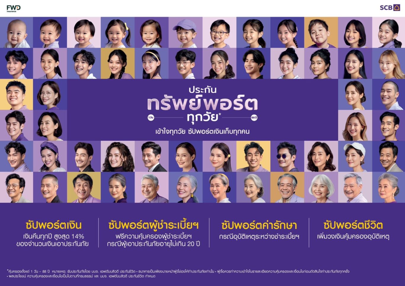นายศรชัย สุเนต์ตา รองผู้จัดการใหญ่ ผู้บริหารสายงาน Wealth & Investment Product ธนาคารไทยพาณิชย์ กล่าวว่า ธนาคารฯ มุ่งมั่นในการนำเสนอผลิตภัณฑ์ความคุ้มครองที่ตอบโจทย์ความต้องการที่หลากหลายของลูกค้าในแต่ละช่วงวัย เพื่อมอบความคุ้มครองที่ตรงใจแก่กลุ่มลูกค้า พร้อมกันกับการวางแผนทางการเงินอย่างชาญฉลาดให้แก่ลูกค้า ตามเทรนด์ตลาดประกันชีวิตที่ได้เข้าสู่ยุครู้ใจลูกค้าเฉพาะบุคคล (Hyper-Personalization) โดยล่าสุดธนาคารได้เปิดตัวประกันสะสมทรัพย์ใหม่ ที่รับประกันภัยโดย บมจ. เอฟดับบลิวดี ประกันชีวิต ซึ่งเป็นแบบประกันที่พัฒนาขึ้นจากความต้องการของลูกค้าด้วยความเข้าใจใน 88 อินไซต์ทางการเงินของคน 88 วัย มาเป็นข้อมูลของการออกแบบผลิตภัณฑ์ประกันภายใต้ชื่อ “ประกันทรัพย์พอร์ตทุกวัย*” มีแนวความคิดที่ต้องการมอบทางเลือกในการเก็บเงินสำหรับคนทั่วไป ทั้งยังมอบความคุ้มครองชีวิตที่ครอบคลุมถึงอายุ 88 ปี และได้รับเงินคืนเป็นประจำทุกปี พร้อมด้วยความคุ้มครองอุบัติเหตุ และค่ารักษาพยาบาลกรณีอุบัติเหตุระหว่างชำระค่าเบี้ยประกันภัย และมีเงินก้อนคืนใช้ยามเกษียณ หรือเป็นมรดกให้คนข้างหลัง โดยให้ความคุ้มครองตั้งแต่อายุ 1 วัน – 88 ปี ชำระค่าเบี้ยประกันภัยเพียง 9 ปี ให้ความคุ้มครองชีวิตถึงอายุ 88 ปี ในกรณีที่ผู้ปกครองสามารถสมัครให้ลูกที่อายุไม่เกิน 20 ปี และยังได้รับความคุ้มครองชีวิตแก่ผู้ชำระค่าเบี้ยประกันภัย อีกด้วย