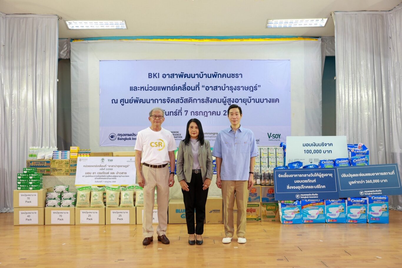 บริษัท กรุงเทพประกันภัย จำกัด (มหาชน) ร่วมกับ บริษัท โรงพยาบาลบำรุงราษฎร์ จำกัด (มหาชน) จัดกิจกรรม BKI อาสาพัฒนาบ้านพักคนชรา และหน่วยแพทย์เคลื่อนที่โดย อาสาบำรุงราษฎร์ ณ ศูนย์พัฒนาการจัดสวัสดิการสังคมผู้สูงอายุบ้านบางแค เมื่อวันที่ 7 กรกฎาคม 2568 เพื่อส่งเสริมให้ผู้สูงอายุมีสุขภาวะที่ดีทั้งทางร่างกาย จิตใจ ในสภาพแวดล้อมความเป็นอยู่ที่ดีและสามารถใช้ชีวิตได้อย่างมีความสุข โดยสนับสนุนงบประมาณในการปรับปรุงซ่อมแซมอาคารชาย อาคารหญิง และอาคารโภชนาการ มูลค่ากว่า 360,000 บาท พร้อมมอบยา เวชภัณฑ์ สิ่งของอุปโภคและบริโภคที่จำเป็น เช่น ผ้าอ้อม ผู้ใหญ่ แผ่นกันเปื้อน ผ้าขนหนู อาหารเสริมทางการแพทย์สำหรับผู้ป่วย ข้าวสาร อาหารแห้งและเครื่องปรุงรส