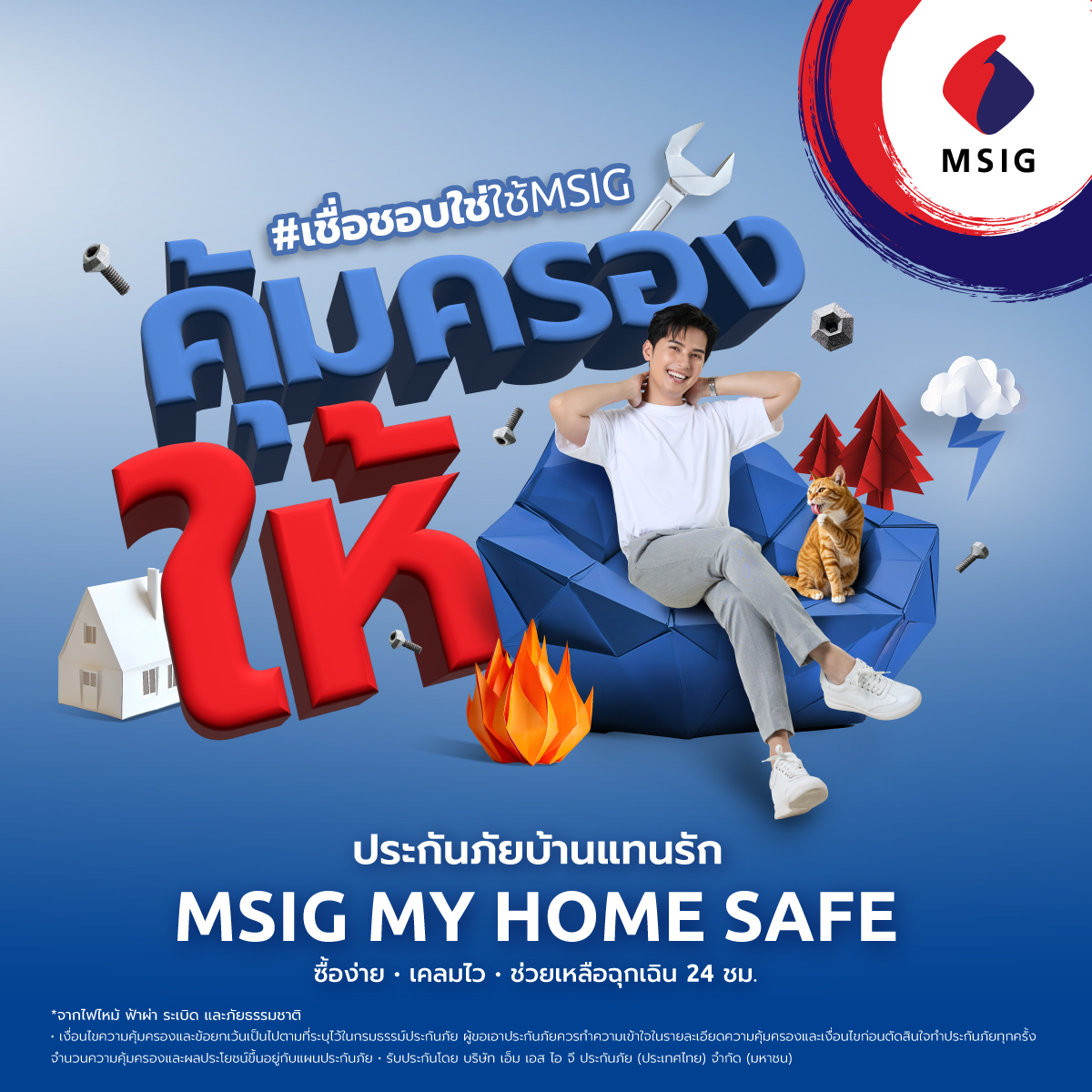 3. MSIG My Home Safeแผนประกันภัยบ้านที่รวมความคุ้มครองทั้งตัวบ้าน สัตว์เลี้ยง และบริการฉุกเฉิน 24 ชม. “บ้านหลังเดียว จบทุกเรื่องไม่คาดคิด”