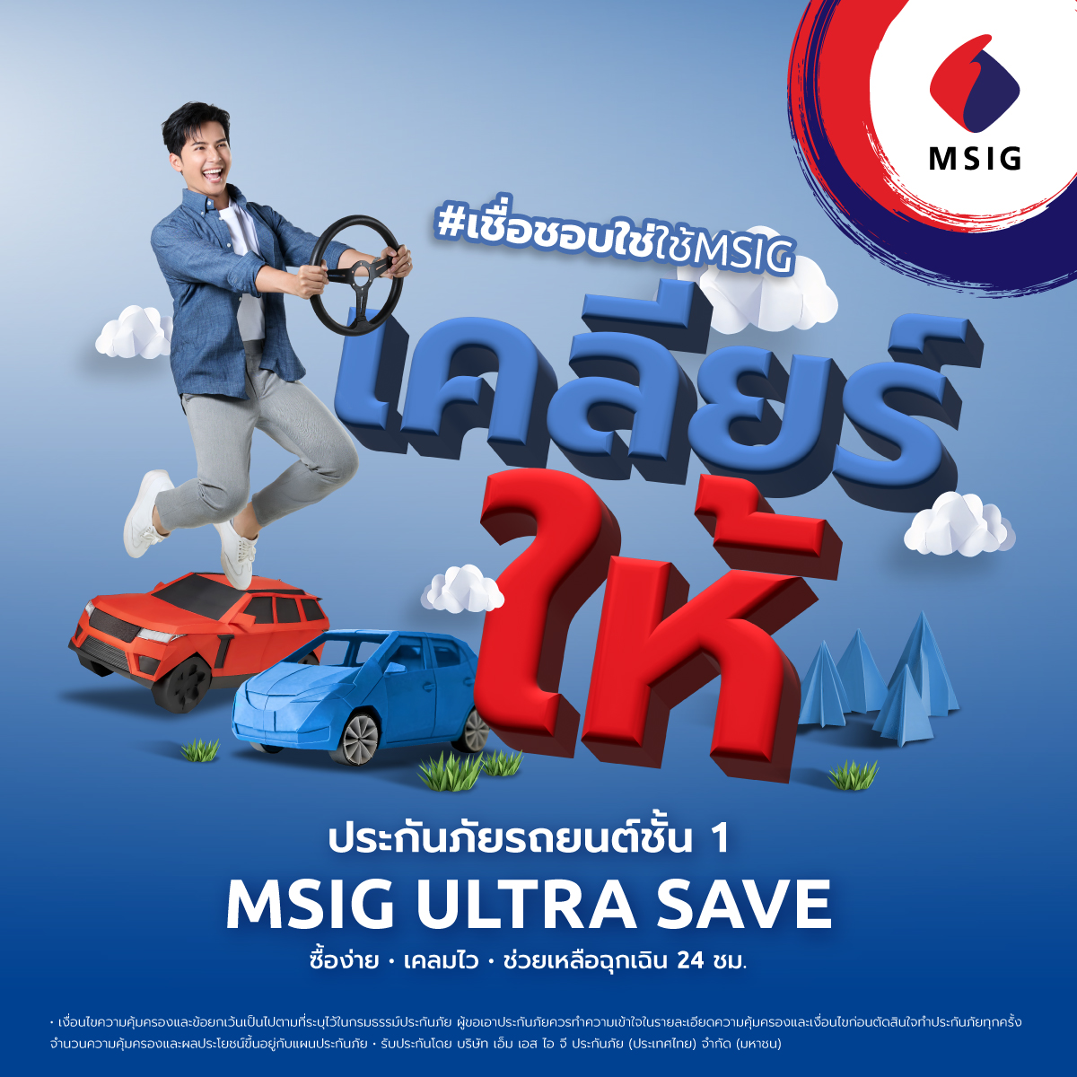 2. MSIG Ultra Saveประกันรถยนต์ชั้น 1 ที่คุ้มครองครอบคลุม ในราคาย่อมเยา เริ่มต้นเพียงหลักพัน“ไม่ว่าจะรถใหม่หรือรถเก่า เราคิดแทนให้แล้วว่าความคุ้มครองแบบเหมาะสมต้องเข้าถึงได้”