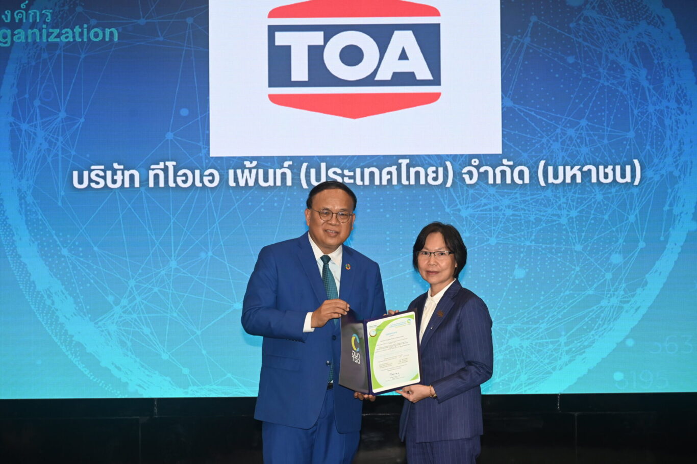 บริษัท ทีโอเอ เพ้นท์ (ประเทศไทย) จำกัด (มหาชน) หรือ TOA เดินหน้าองค์กรสู่ Net Zero อย่างต่อเนื่อง ล่าสุดได้รับประกาศนียบัตร “เครื่องหมายรับรองคาร์บอนฟุตพริ้นท์ขององค์กร (Carbon Footprint for Organization : CFO)” ต่อเนื่องเป็นปีที่ 6 โดยมี วิภาดา นาคไพรัช ผู้อำนวยการสายงาน SHE & Quality Management and Sustainability เป็นตัวแทนรับมอบจาก ดร.วิจารย์ สิมาฉายา ประธานกรรมการองค์การบริหารจัดการก๊าซเรือนกระจก และ ดร.ณัฐริกา วายุภาพ นิติพน รองผู้อำนวยการองค์การบริหารจัดการก๊าซเรือนกระจก ร่วมด้วย ณ สถาบันเพื่อการยุติธรรมแห่งประเทศไทย หรือ TIJ