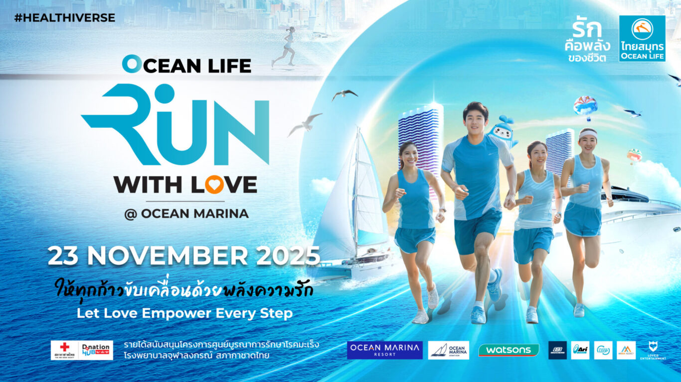 บมจ.ไทยสมุทรประกันชีวิต รักคือพลังของชีวิต โดย นางนุสรา (อัสสกุล) บัญญัติปิยพจน์ ประธานเจ้าหน้าบริหารและกรรมการผู้จัดการ (CEO) ชวนคนไทยรักตัวเอง รักสุขภาพ และรักสังคม กับกิจกรรม OCEAN LIFE Run With Love 2025 @OCEAN MARINA งานวิ่งที่จะทำให้ทุกก้าวขับเคลื่อนด้วยพลังความรัก ด้วยการนำรายได้จำนวน 1,000,000 บาท บริจาคสมทบทุนให้กับโครงการอาคารศูนย์บูรณาการรักษาโรคมะเร็ง โรงพยาบาลจุฬาลงกรณ์ สภากาชาดไทย โดยงานจะจัดขึ้น วันที่ 23 พฤศจิกายน 2568 ณ Ocean Marina พัทยา โดยงาน OCEAN LIFE Run With Love 2025 @OCEAN MARINA