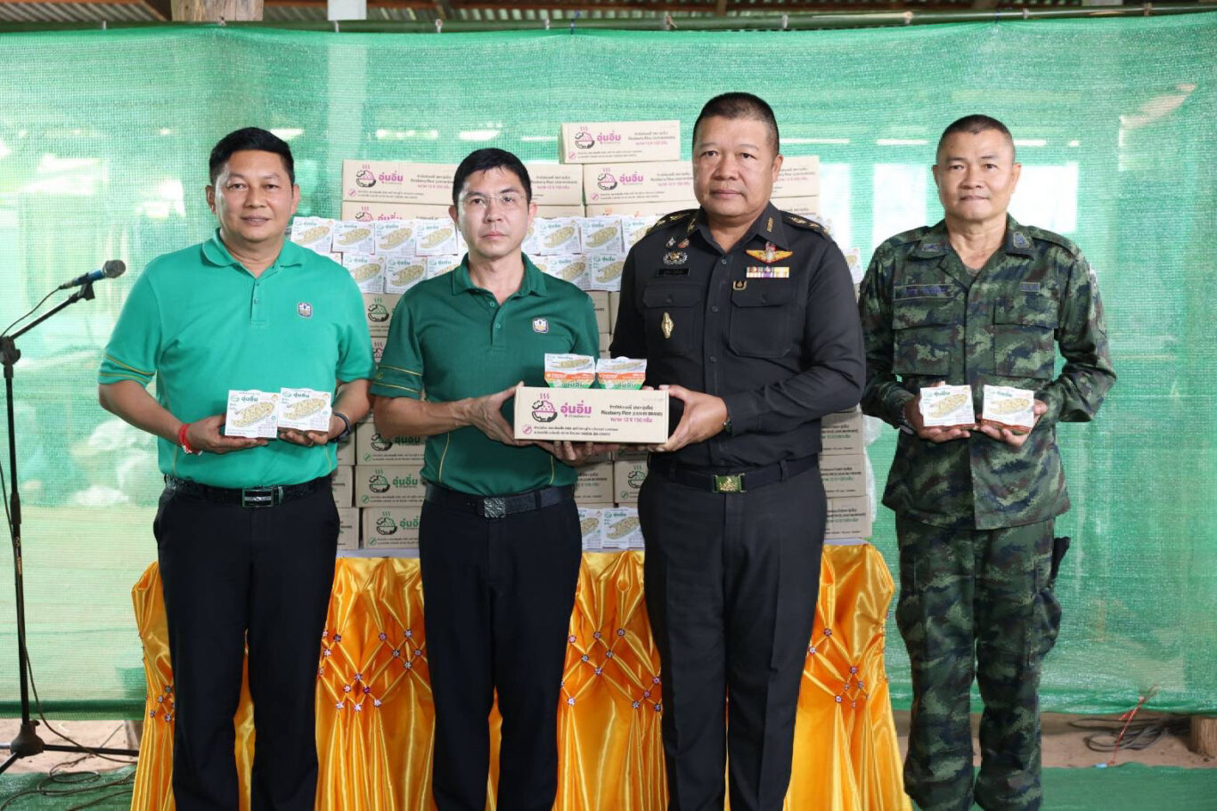 ธ.ก.ส. รู้สึกเป็นเกียรติที่ได้มีโอกาสมาให้กำลังใจให้แก่ครอบครัววีรชนผู้เสียสละเพื่อส่งมอบความช่วยเหลือกรณีพิเศษในครั้งนี้ และพร้อมให้การสนับสนุนดูแลในด้านต่าง ๆ ตามภารกิจของธนาคารต่อไปในโอกาสนี้ ธ.ก.ส. ยังได้มอบข้าวพร้อมทาน ตราอุ่นอิ่ม ทั้งข้าวหอมมะลิ ข้าวกล้องหอมมะลิ และข้าวไรซ์เบอร์รี ที่สามารถรับประทานได้ทันที สะดวก สะอาด ปลอดภัย พกพาง่าย โดยไม่ต้องอุ่น และสามารถเก็บรักษาได้ในอุณหภูมิห้องนานถึง 18 เดือน ให้แก่กองทัพภาคที่ 2 สำหรับเป็นเครื่องบริโภคให้กับกำลังพลในพื้นที่ เพื่อสนับสนุนการดำเนินงานของทหารและเจ้าหน้าที่ ในการปฏิบัติหน้าที่เพื่อรักษาอธิปไตยและความสงบสุขให้กับประชาชนและประเทศชาติของชาติในพื้นที่ชายแดน หรือในภารกิจบรรเทาทุกข์ให้กับประชาชน โดยมี พ.อ. ฐาพล อ้อชัยภูมิ รองผู้อำนวยการรักษาความมั่นคงภายใน จังหวัดอำนาจเจริญ (ฝ่ายทหาร) เป็นผู้แทนในการรับมอบ