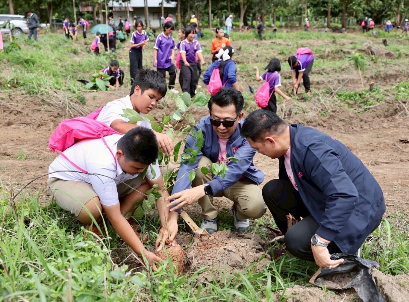 ทั้งนี้ เพื่อเพิ่มพื้นที่สีเขียวและลดก๊าซเรือนกระจกในชั้นบรรยากาศ พร้อมสร้างจิตสำนึกด้านสิ่งแวดล้อมและสร้างรายได้ให้กับชุมชน ในการร่วมตระหนักรู้ถึงความสำคัญของการอนุรักษ์ป่าไม้ และส่งเสริมการมีส่วนร่วมของประชาชนทุกภาคส่วนในการดูแลทรัพยากรธรรมชาติร่วมกันอย่างยั่งยืน โดยมีผู้บริหารและพนักงานธนาคารออมสิน ส่วนราชการที่เกี่ยวข้อง ชาวบ้านและนักเรียนในพื้นที่ ร่วมปลูกต้นกล้าพันธุ์ไม้ รวม 13 ชนิด เช่น ไม้สัก ต้นสน อินทนิล ไม้แดง ยางนา ตะแบก ตะเคียนทอง มะค่าโมง ประดู่ป่า กระบาก และพะยูง เป็นต้น
