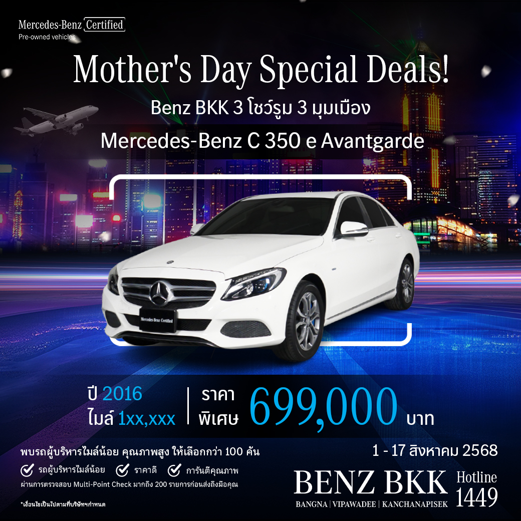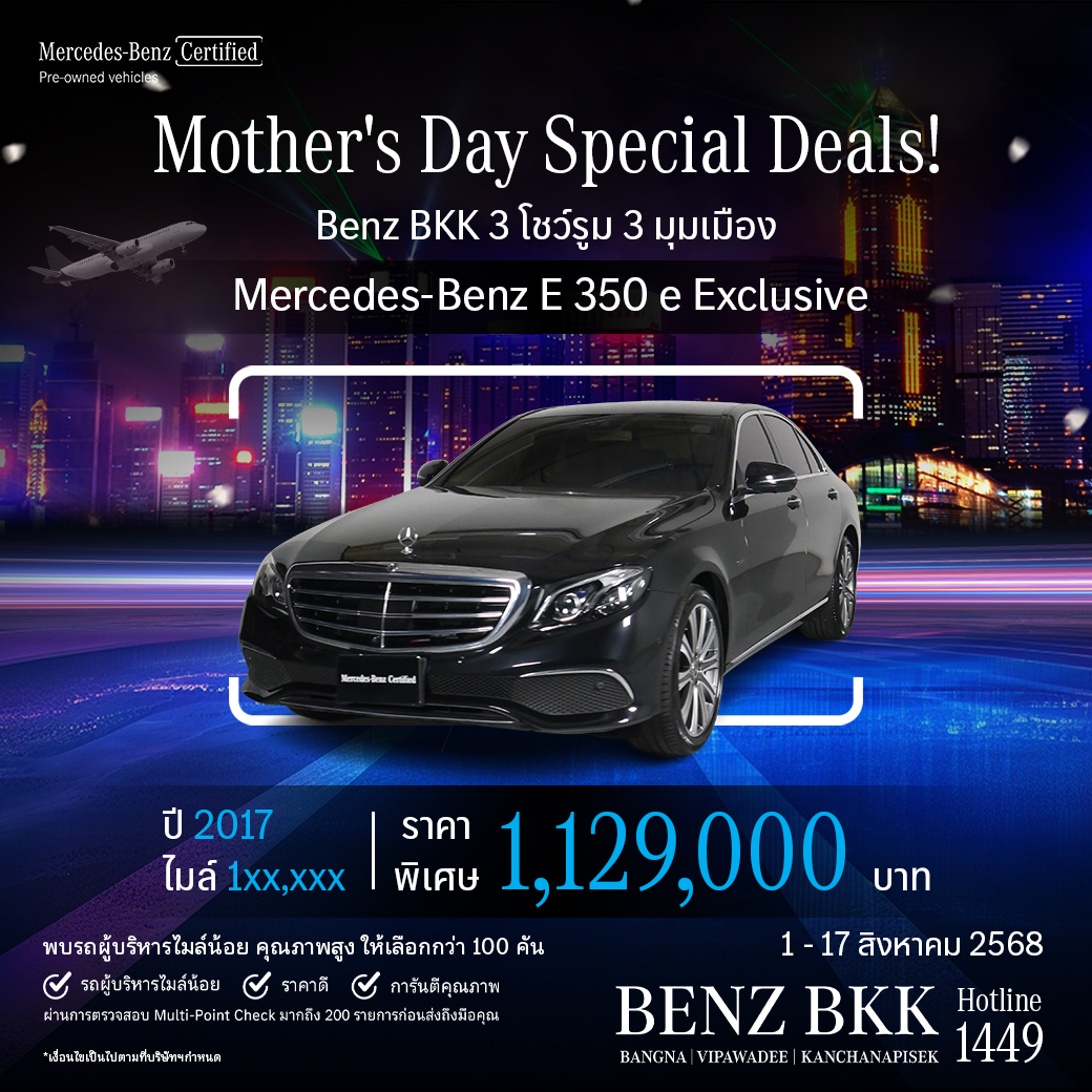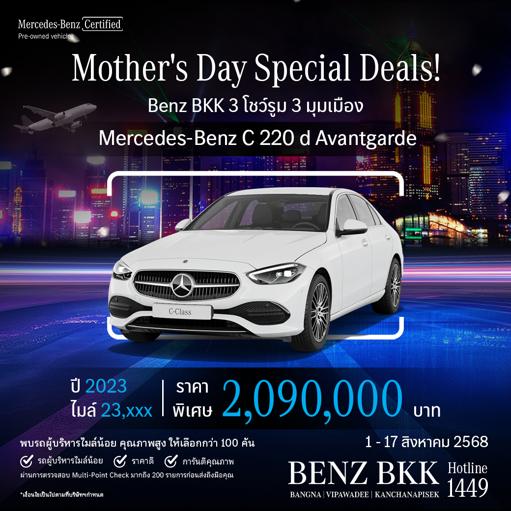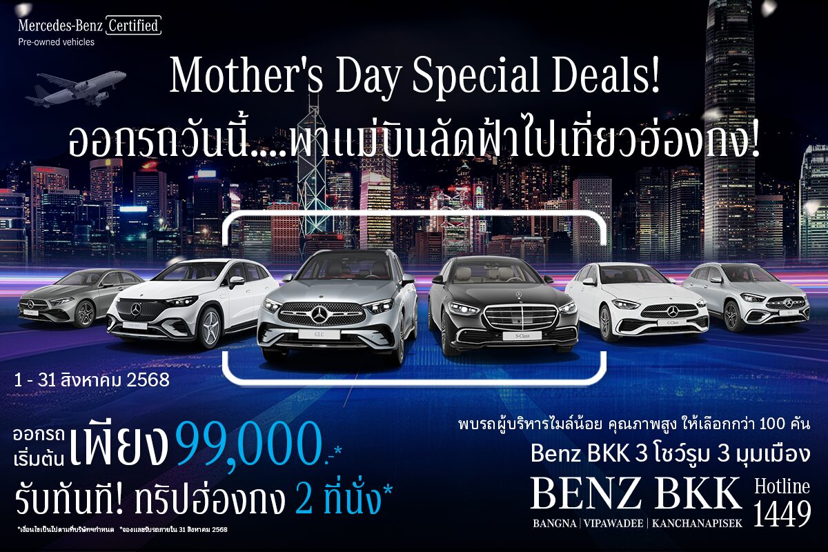 กรุงเทพฯ – 8 สิงหาคม 2568 – Benz BKK Group ผู้แทนจำหน่ายและศูนย์บริการรถยนต์ Mercedes-Benz อย่างเป็นทางการ จัดแคมเปญ “Mother’s Day Special Deals!” ฉลองเทศกาลวันแม่ มอบข้อเสนอสุดคุ้มให้ลูกค้าที่ต้องการเป็นเจ้าของรถยนต์ Mercedes-Benz Certified รถเบนซ์มือสองคุณภาพมาตรฐานเยอรมัน ระหว่างวันที่ 7–17 สิงหาคม 2568 ครอบคลุมทั้ง 3 สาขา บางนา วิภาวดี และ กาญจนาภิเษก