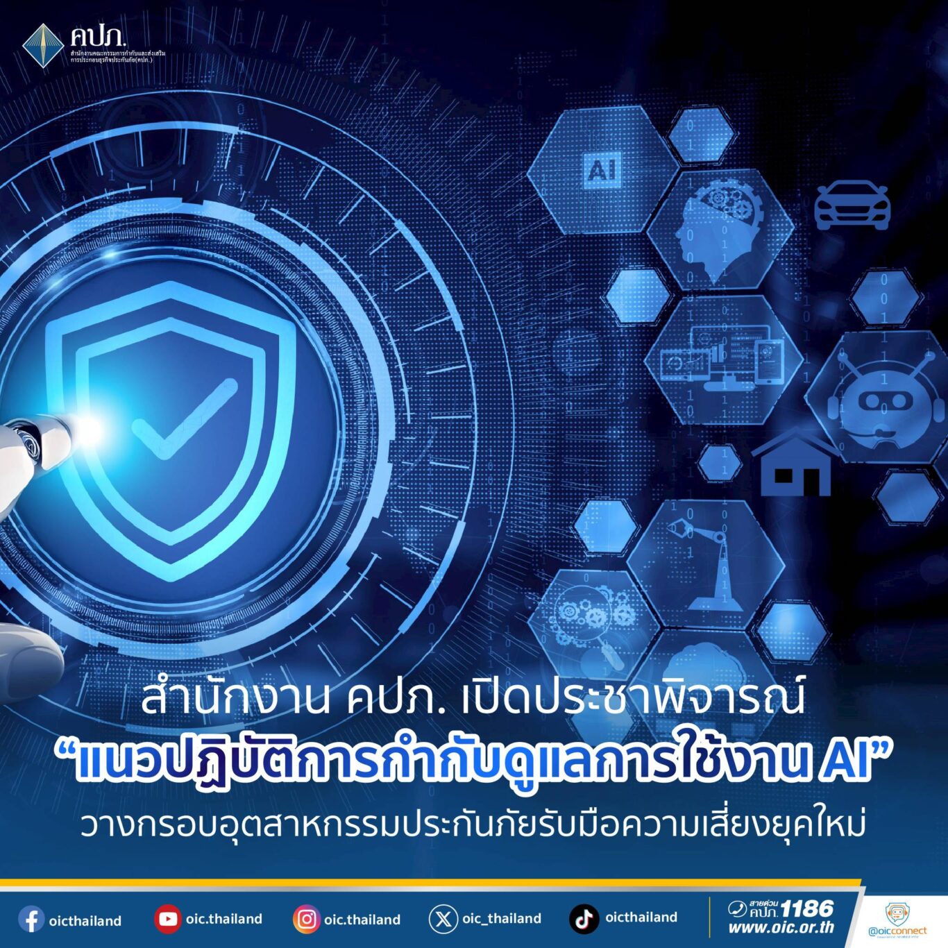สำนักงานคณะกรรมการกำกับและส่งเสริมการประกอบธุรกิจประกันภัย (สำนักงาน คปภ.) เดินหน้าวางกรอบการกำกับดูแลการใช้งานปัญญาประดิษฐ์ (AI) ในอุตสาหกรรมประกันภัย เพื่อรองรับความเสี่ยงยุคใหม่จากการเปลี่ยนแปลงทางเทคโนโลยี โดยเปิดประชาพิจารณ์ (Public Hearing) ต่อร่าง “แนวปฏิบัติการกำกับดูแลการใช้งานปัญญาประดิษฐ์ สำหรับบริษัทประกันภัย (AI Governance Guideline)” ตั้งแต่วันนี้ ถึงวันศุกร์ที่ 22 สิงหาคม 2568 หลังจากได้จัดเวที Focus Group ร่วมกับภาคธุรกิจแล้วก่อนหน้านี้