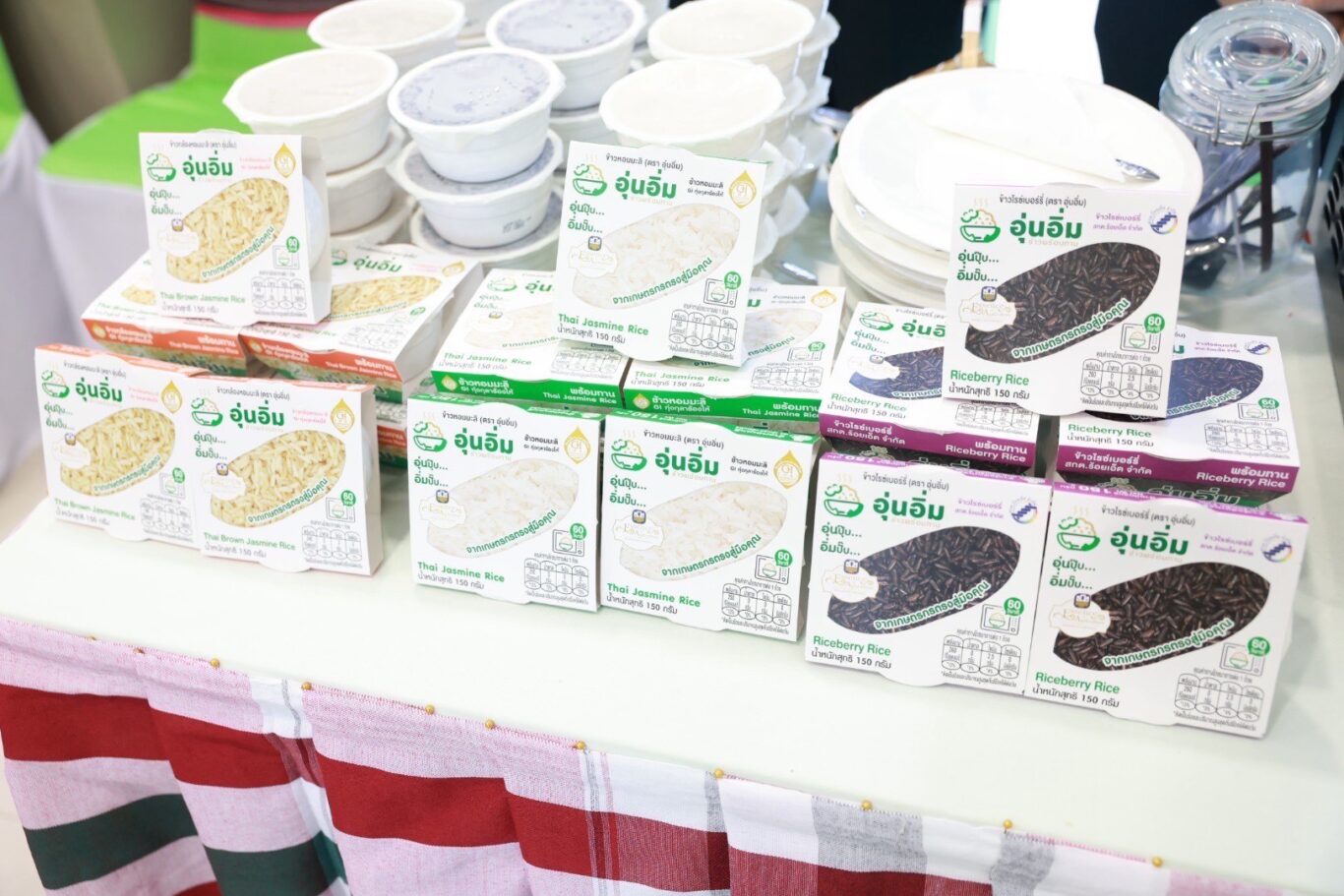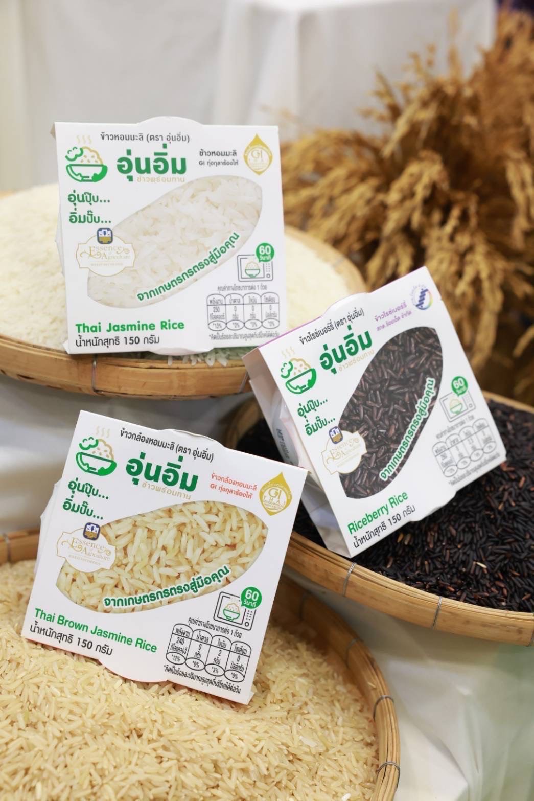 โดย ธ.ก.ส. สนับสนุนการนำข้าวหอมมะลิ GI ทุ่งกุลาร้องไห้ไปสู่ข้าวพร้อมทานภายใต้แบรนด์ “ข้าวอุ่นอิ่ม” ที่ผลิตด้วยนวัตกรรมที่ทันสมัย สามารถเก็บในอุณหภูมิห้องได้นานถึง 18 เดือน พร้อมทานทันทีเมื่อเปิดฝา หรืออุ่นเพียง 60 วินาที จากการดำเนินการตลอดปี 2567 ข้าวอุ่นอิ่มได้พัฒนาเป็นผลิตภัณฑ์พร้อมทาน 3 ประเภท ได้แก่ ข้าวหอมมะลิ ข้าวกล้อง และข้าวไรซ์เบอร์รี่ พร้อมเพิ่มปริมาณการรับซื้อข้าวเปลือกจากสมาชิกเกษตรกรได้มากขึ้นถึง 1,513 ตัน เมื่อเทียบกับปีก่อน และยังสามารถยกระดับมูลค่าข้าว จากข้าวสาร A-Rice ราคา ตันละ 50,000 บาท กลายเป็นข้าวพร้อมทานที่ขายได้สูงถึงเกือบตันละ 300,000 บาท โดยการทำข้าวอุ่นอิ่ม เป็นการส่งเสริมให้ “ชนบทแข็งแรง” ภายใต้แนวคิด “Essence of Agriculture” แกนกลางการเกษตร