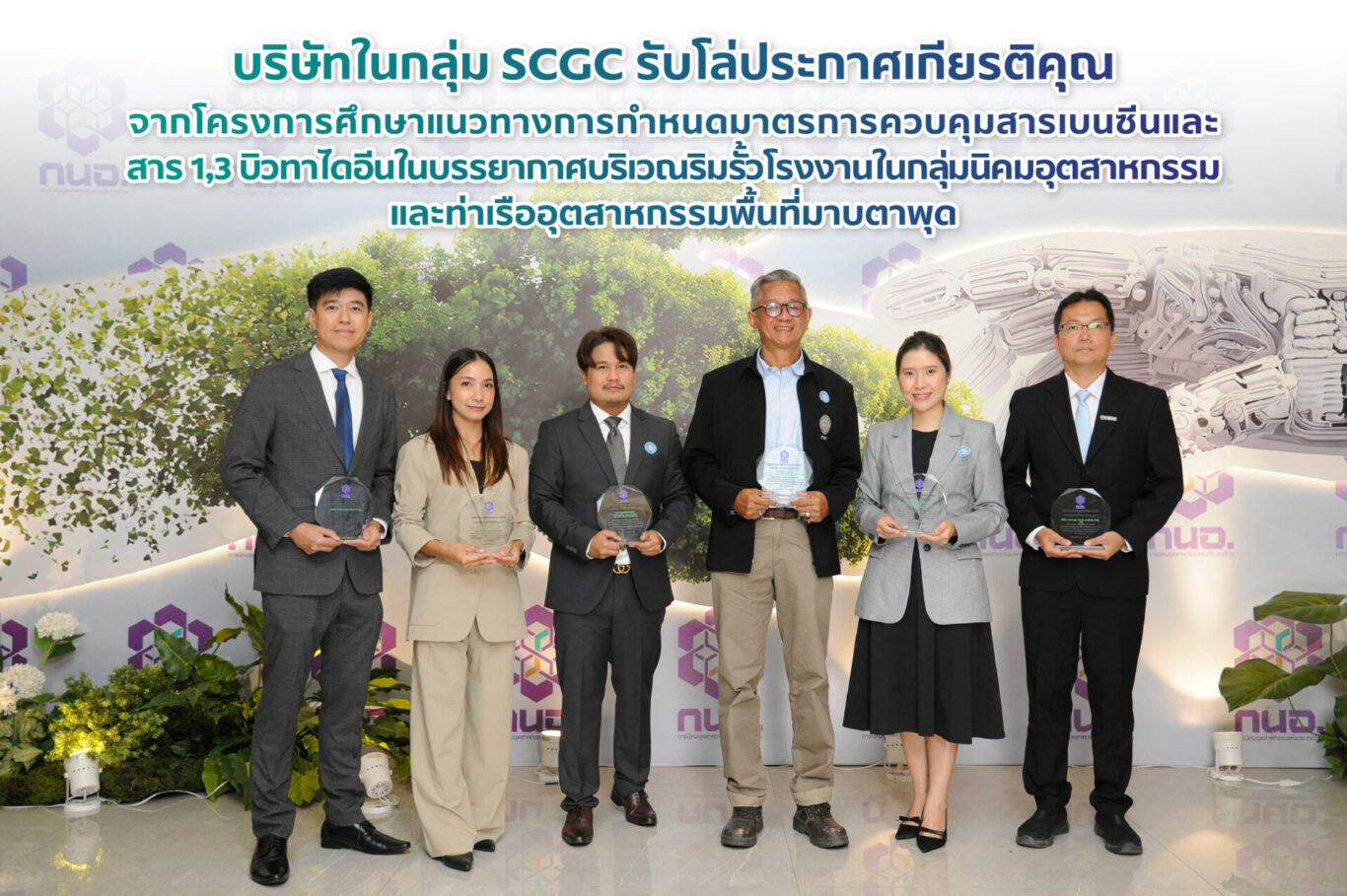 สำหรับรางวัลที่ SCGC ได้รับในปี 2568 นี้ แบ่งเป็น รางวัลธรรมาภิบาลสิ่งแวดล้อมและความปลอดภัย (ธงขาว-ดาวทอง) ประจำปี 2568 ซึ่งเป็นบริษัทที่ได้รับรางวัลธงขาวดาวเขียวต่อเนื่อง 6 ปี ได้แก่ บริษัท ระยองโอเลฟินส์ จํากัด บริษัท มาบตาพุดโอเลฟินส์ จํากัด บริษัท ไทยโพลิเอททีลีน จํากัด บริษัท ทีพีซี เพสต์ เรซิน จำกัด บริษัท ระยอง เทอร์มินัล จํากัด บริษัท ไทย เอ็มเอ็มเอ จํากัด บริษัท ไทย เอ็มเอฟซี จํากัด และ บริษัทแกรนด์ สยาม คอมโพสิต จํากัดรางวัลธรรมาภิบาลสิ่งแวดล้อมและความปลอดภัย (ธงขาว-ดาวเขียว) ประจำปี 2568 ได้แก่ บริษัท ระยองโอเลฟินส์ จํากัด บริษัท มาบตาพุดโอเลฟินส์ จํากัด บริษัท ไทยโพลิเอททีลีน จํากัด บริษัท ทีพีซี เพสต์ เรซิน จำกัด บริษัท เอสซีจีซี ไอโค พอลิเมอร์ จํากัด บริษัท ระยอง เทอร์มินัล จํากัด บริษัท ไทย เอ็มเอ็มเอ จํากัด บริษัท ไทย เอ็มเอฟซี จํากัด และ บริษัท แกรนด์ สยาม คอมโพสิต จํากัด และโล่ประกาศเกียรติคุณโครงการศึกษาแนวทางการกำหนดมาตรการควบคุมสารเบนซีนและสาร 1, 3 บิวทาไดอีนในบรรยากาศบริเวณริมรั้วโรงงานในกลุ่มนิคมอุตสาหกรรมและท่าเรืออุตสาหกรรมพื้นที่มาบตาพุด ได้แก่ บริษัท ไทยพลาสติกและเคมีภัณฑ์ จำกัด (มหาชน) บริษัทระยองโอเลฟินส์ จํากัด บริษัท มาบตาพุดโอเลฟินส์ จํากัด และบริษัท มาบตาพุด แทงค์ เทอร์มินัล จำกัด