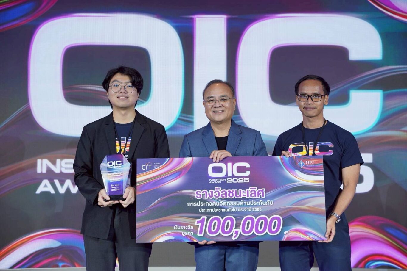 เมื่อวันที่ 25 สิงหาคม 2568 นายชูฉัตร ประมูลผล เลขาธิการคณะกรรมการกำกับและส่งเสริมการประกอบธุรกิจประกันภัย (เลขาธิการ คปภ.) ในฐานะประธานคณะกรรมการตัดสิน ได้มอบรางวัลสุดยอดนวัตกรรมเทคโนโลยีด้านการประกันภัย “OIC InsurTech Award 2025” ณ ห้องประชุมสถาบันวิทยาการประกันภัยระดับสูง สำนักงาน คปภ. ถนนรัชดาภิเษก กรุงเทพฯ ซึ่งในปีนี้มีผู้สมัครเข้าร่วมกว่า 400 ทีม ชิงเงินรางวัลรวมกว่า 500,000 บาท พร้อมโล่รางวัลอันทรงเกียรติ
