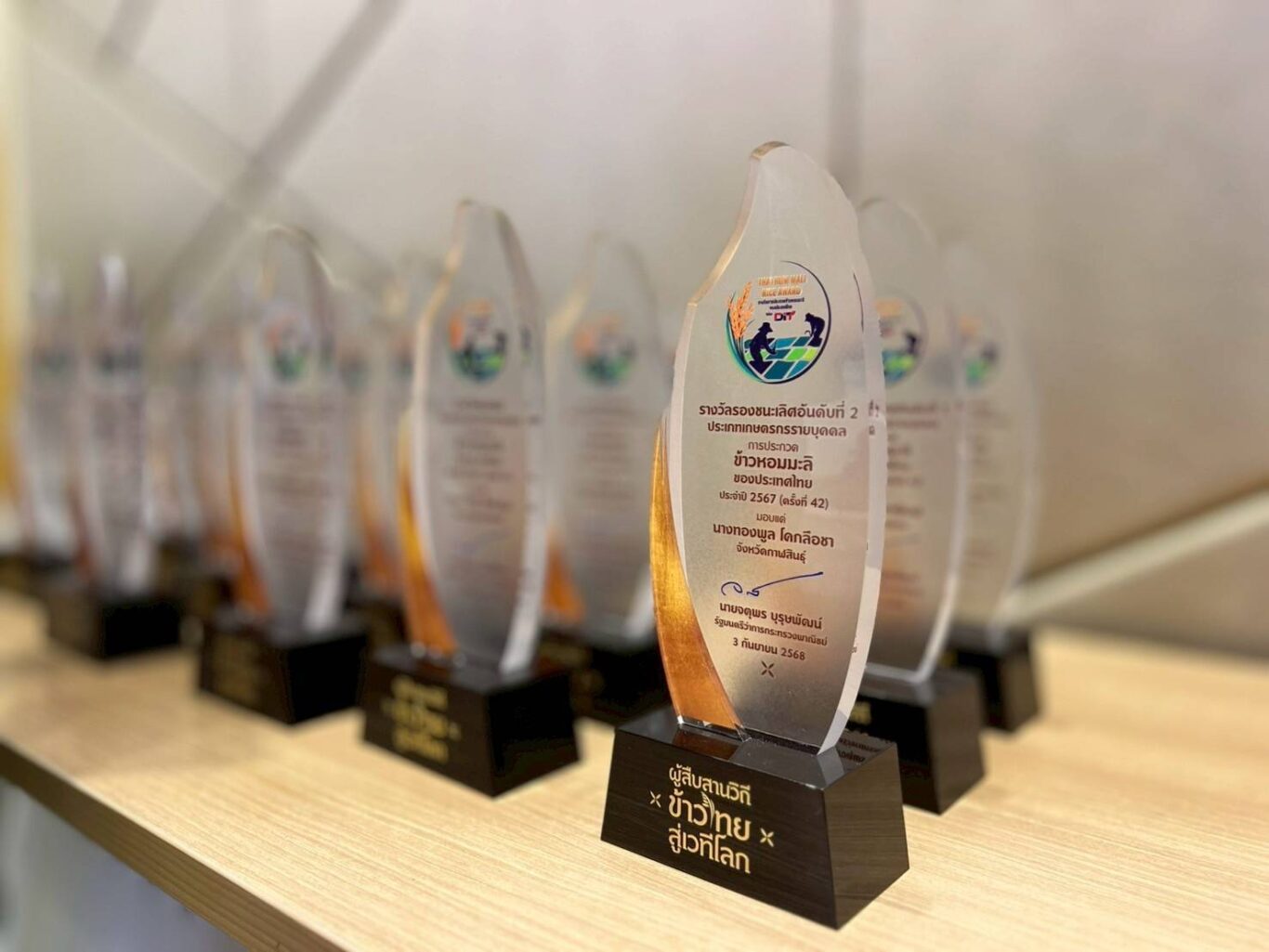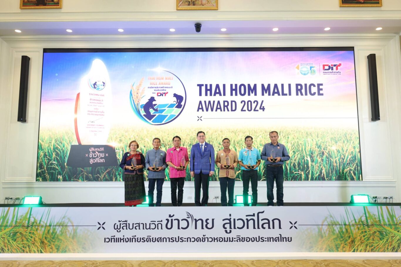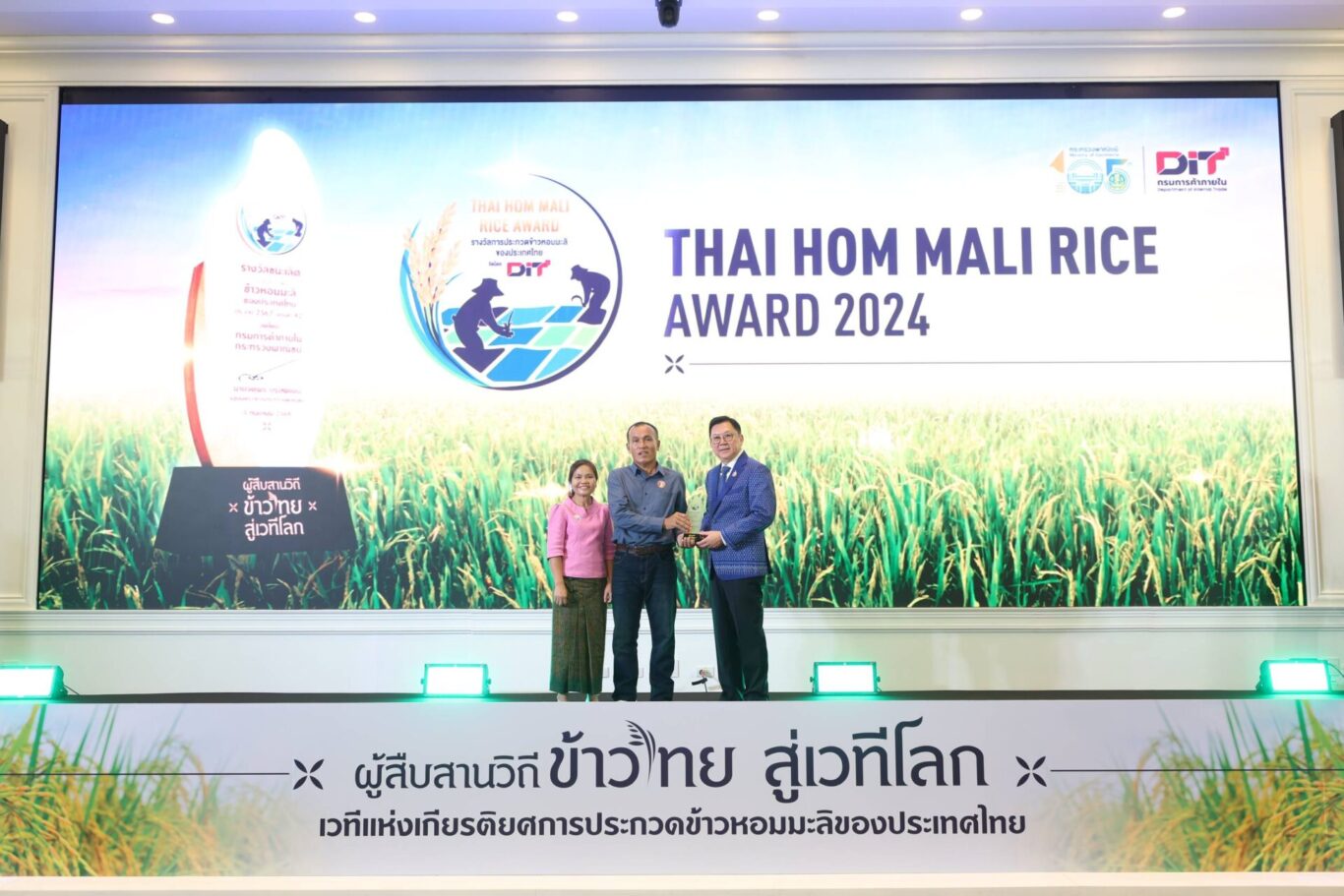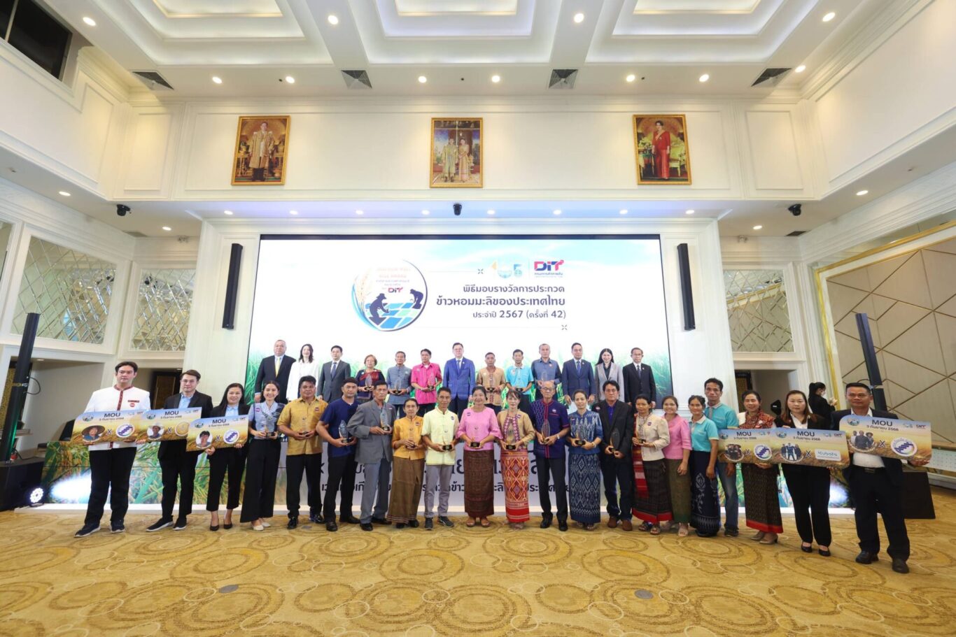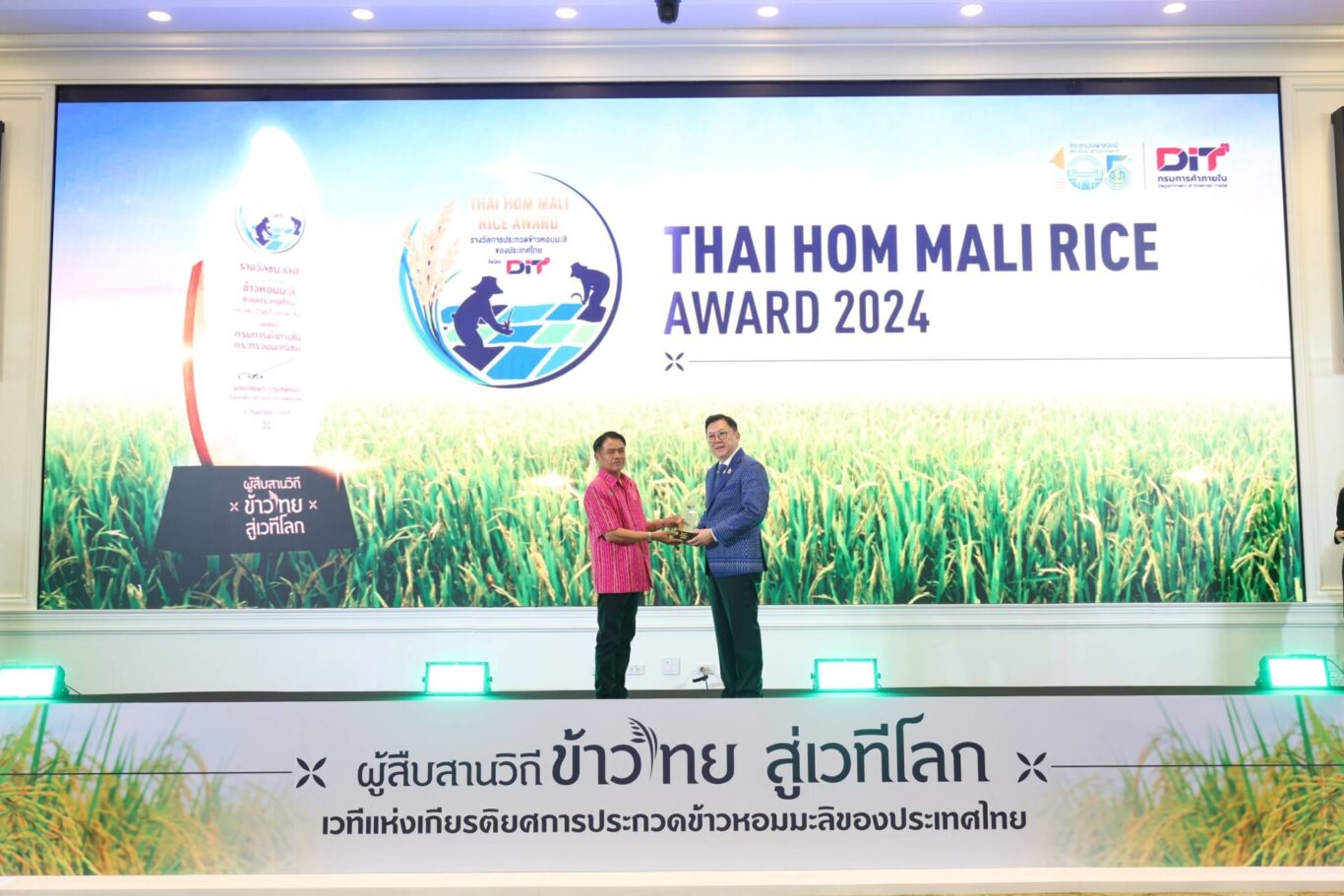 DIT กรมการค้าภายใน กระทรวงพาณิชย์ จัดพิธีมอบรางวัลการประกวดข้าวหอมมะลิของประเทศไทย ประจำปี 2567 (ครั้งที่ 42) ณ ห้องบุรฉัตรไชยากร กระทรวงพาณิชย์ โดยมี นายจตุพร บุรุษพัฒน์ รัฐมนตรีว่าการกระทรวงพาณิชย์ เป็นประธานในพิธี เมื่อวันพุธที่ 3 กันยายน 2568 เพื่อยกย่องและเชิดชูเกษตรกรและสถาบันเกษตรที่มีความมุ่งมั่นในการรักษาและพัฒนาคุณภาพข้าวหอมมะลิไทยให้คงความมีอัตลักษณ์เฉพาะตัว และมีความอร่อยจน เป็นที่ยอมรับ ในระดับสากล ตอบโจทย์ผู้บริโภคที่ต้องการข้าวคุณภาพสูง พร้อมเชื่อมโยงการตลาด สร้างมูลค่าเพิ่ม ส่งเสริมการกระจายรายได้สู่ชุมชนและเปิดช่องทางจำหน่ายอย่างยั่งยืนให้กับชาวนาไทย