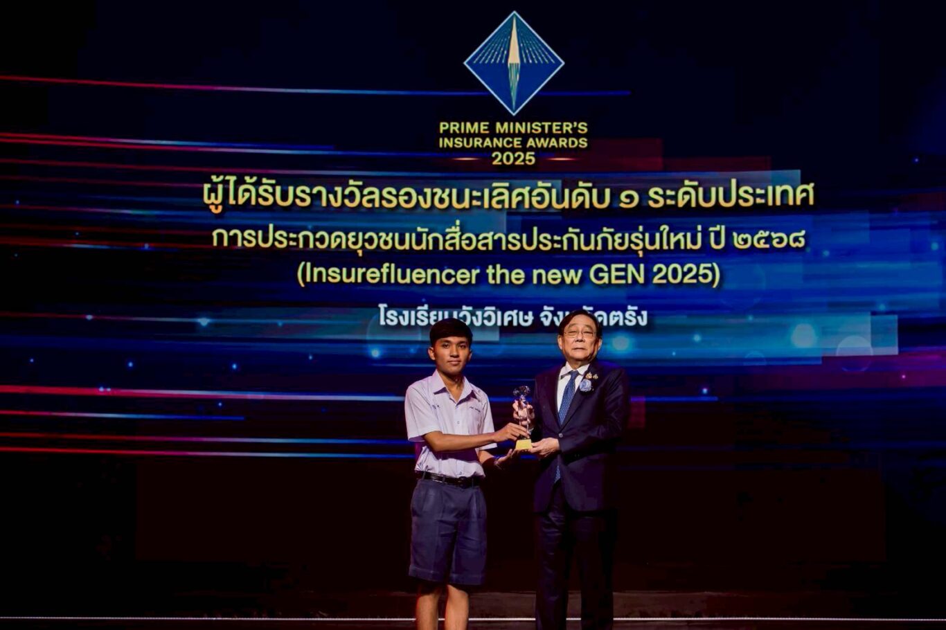 ทั้งนี้ โรงเรียนที่คว้ารางวัลชนะเลิศและรองชนะเลิศ ในการประกวดยุวชนนักสื่อสารประกันภัยรุ่นใหม่ ปี 2568 “Insurefluencer the new GEN 2025” เข้ารับโล่รางวัลระดับประเทศ เมื่อวันที่ 5 กันยายน 2568 จากนายพิชัย ชุณหวชิร รองนายกรัฐมนตรีและรัฐมนตรีว่าการกระทรวงการคลัง ในงานพิธีมอบรางวัลประกันภัยดีเด่นครบวงจร (Prime Minister’s Insurance Awards 2025) ณ ห้องบางกอกคอนเวนชัน เซ็นเตอร์ เอวัน โรงแรม เซ็นทาราแกรนด์ และบางกอกคอนเวนชันเซ็นเตอร์ เซ็นทรัลเวิลด์ โดยสามารถรับชมผลงานแต่ละประเภทรางวัลได้ที่ช่องทาง YouTube : สํานักงาน คปภ. oic thailand