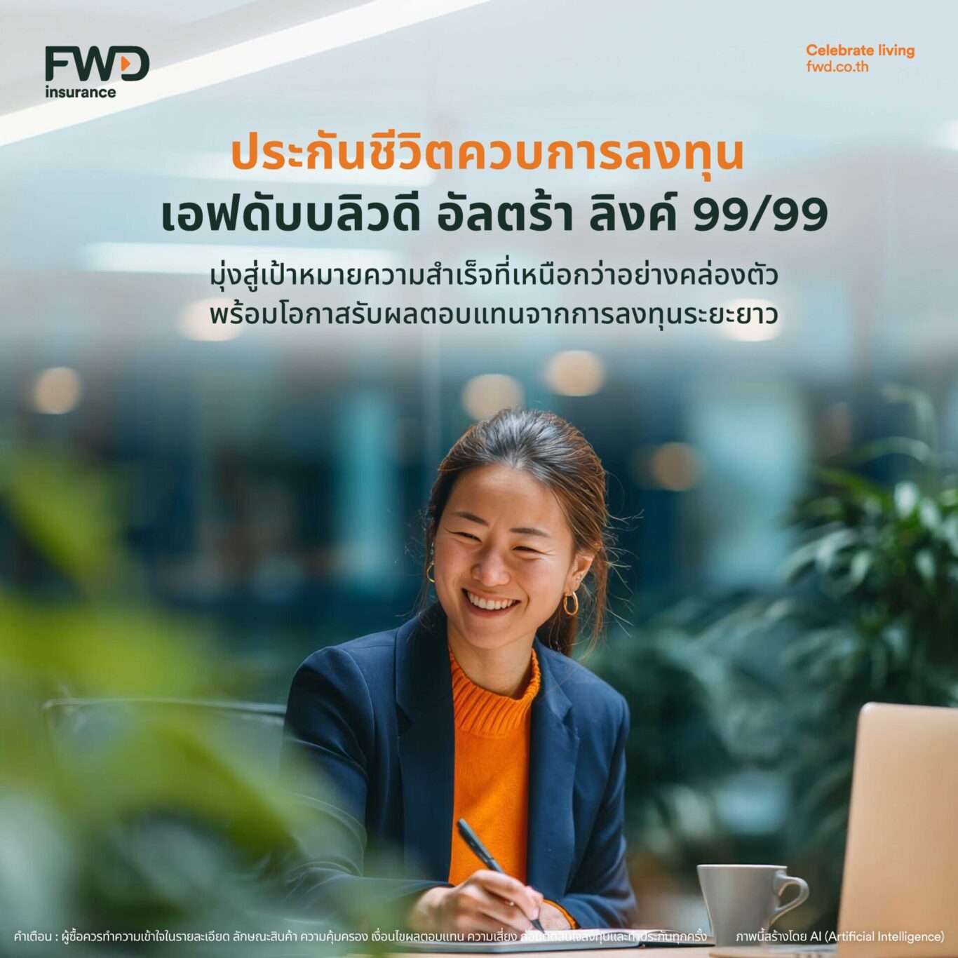 FWD ประกันชีวิต ส่ง “FWD Ultra Linked 99/99” ตอบโจทย์คนรุ่นใหม่ที่ให้ความสำคัญกับการวางแผนอนาคตและความมั่นคงทางการเงิน ด้วยแบบประกันชีวิตควบการลงทุนที่มอบความคุ้มครองชีวิตถึงอายุ 99 ปี* พร้อมโอกาสสร้างผลตอบแทนจากการลงทุนในกองทุนคุณภาพที่คัดสรรมาอย่างพิถีพิถัน ควบคู่กับความยืดหยุ่นในการปรับเปลี่ยนตามจังหวะชีวิต ช่วยให้การออกแบบอนาคตทางการเงินตามเป้าหมายส่วนบุคคลเป็นเรื่องง่ายตอบรับเทรนด์คนไทย ที่ให้ความสำคัญกับการออมและการลงทุนสูงขึ้น ด้วยเบี้ยประกันเริ่มต้นที่ 12,000 บาทต่อปีข้อมูลล่าสุดจากธนาคารแห่งประเทศไทย ปี 2565 ชี้ให้เห็นว่า คนไทยมีทักษะทางการเงินดีขึ้นอย่างต่อเนื่อง โดยมีคะแนนเฉลี่ยอยู่ที่ 71.4% ดีขึ้นกว่าปี 2563 ที่ 67.4% และสูงกว่าค่าเฉลี่ยของ OECD ที่ 60.5%