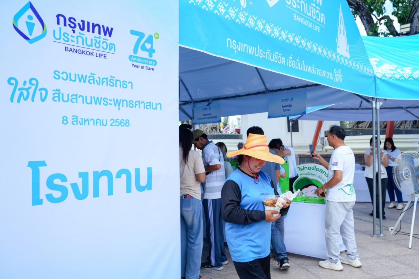 กรุงเทพประกันชีวิต จัดกิจกรรม “รวมพลังศรัทธา ใส่ใจพระพุทธศาสนา” เนื่องในโอกาสครบรอบ 74 ปี สานต่อพันธกิจขององค์กรในเรื่องการใส่ใจชุมชนและสังคม ภายใต้แนวคิด “ใส่ใจพุทธศาสนา เพื่อความสุขที่ยั่งยืน” ควบคู่กับความเข้มแข็งของศาสนา ชุมชน และสังคม โดยได้มอบสิ่งอำนวยความสะดวกในการจัดกิจกรรมศาสนพิธี งานสาธารณะประโยชน์ พร้อมจัดพิธีทำบุญถวายภัตตาหารเพลแด่พระสงฆ์ เพื่อสืบสานพระพุทธศาสนา และเสริมสร้างความเป็นสิริมงคล โดยมีผู้บริหาร พันธมิตร ทีมตัวแทน และลูกค้า เข้าร่วมงาน