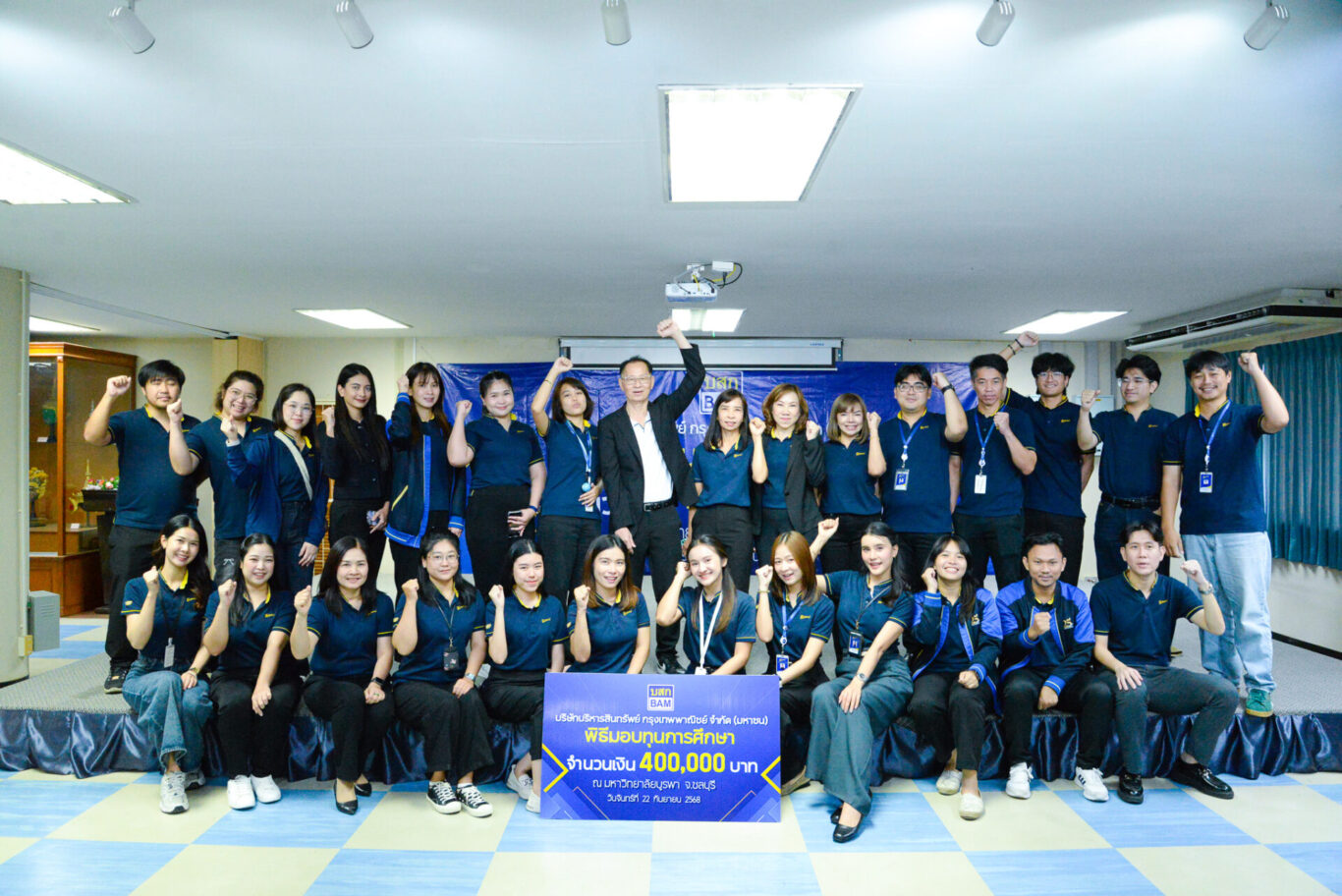 นายประสิทธิ์ เงินถาวรกุล ผู้อำนวยการฝ่ายพัฒนาสินทรัพย์ภาคตะวันออก นางปฏิญญา เจนศิริศักดิ์ ผู้จัดการสำนักงานชลบุรี นางสาวพิมพ์ชนา ศรีสุขพัฒนาชัย ผู้จัดการสำนักงานระยอง นางสุมาลี พงษ์พานิช ผู้จัดการสำนักงานฉะเชิงเทรา นางสาวชฎาภรณ์ วงศ์ชีวะ ผู้จัดการกลุ่มประชาสัมพันธ์ พร้อมทั้งพนักงาน บริษัทบริหารสินทรัพย์ กรุงเทพพาณิชย์ จำกัด (มหาชน) หรือ BAM ร่วมจัดพิธีมอบทุนการศึกษาประจำปี 2568 ในเขตพื้นที่สถานศึกษาภาคตะวันออกให้กับนักเรียนระดับมัธยมศึกษาจำนวน 8 โรงเรียน โรงเรียนละ 5 ทุน รวม 40 ทุน ทุนละ 5,000 บาท และระดับอุดมศึกษา รวม 10 ทุน ทุนละ 20,000 บาท รวมมอบทุนการศึกษาทั้งสิ้น 50 ทุน เป็นเงิน 400,000 บาท ณ อาคารกองกิจการนิสิต ชั้น 2 มหาวิทยาลัยบูรพา จังหวัดชลบุรี