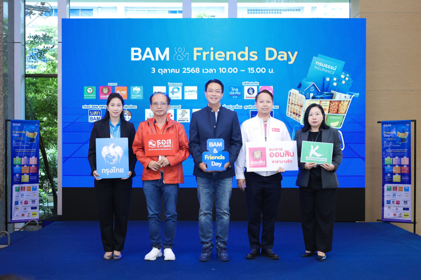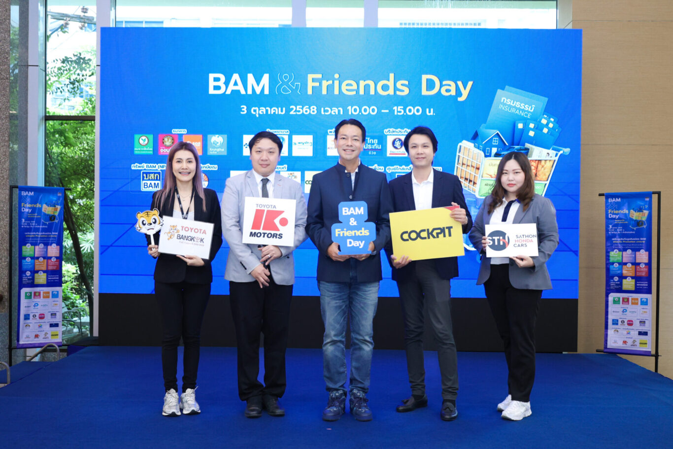 BAM จัดงาน “BAM & Friends Day” มหกรรมบูธแสนอบอุ่นและคึกคัก งานที่รวมพันธมิตรและคู่ค้า เพื่อนร่วมเส้นทางธุรกิจของ BAM จากหลากหลายภาคส่วน ไม่ว่าจะเป็นกลุ่มธนาคาร บริษัทประกันภัย ประกันชีวิต โรงพยาบาล ยานยนต์ พลังงาน และอีกหลายธุรกิจ รวม 19 บูธ ร่วมสร้างสีสัน และมอบสิทธิพิเศษให้กับผู้ร่วมงานมากมาย