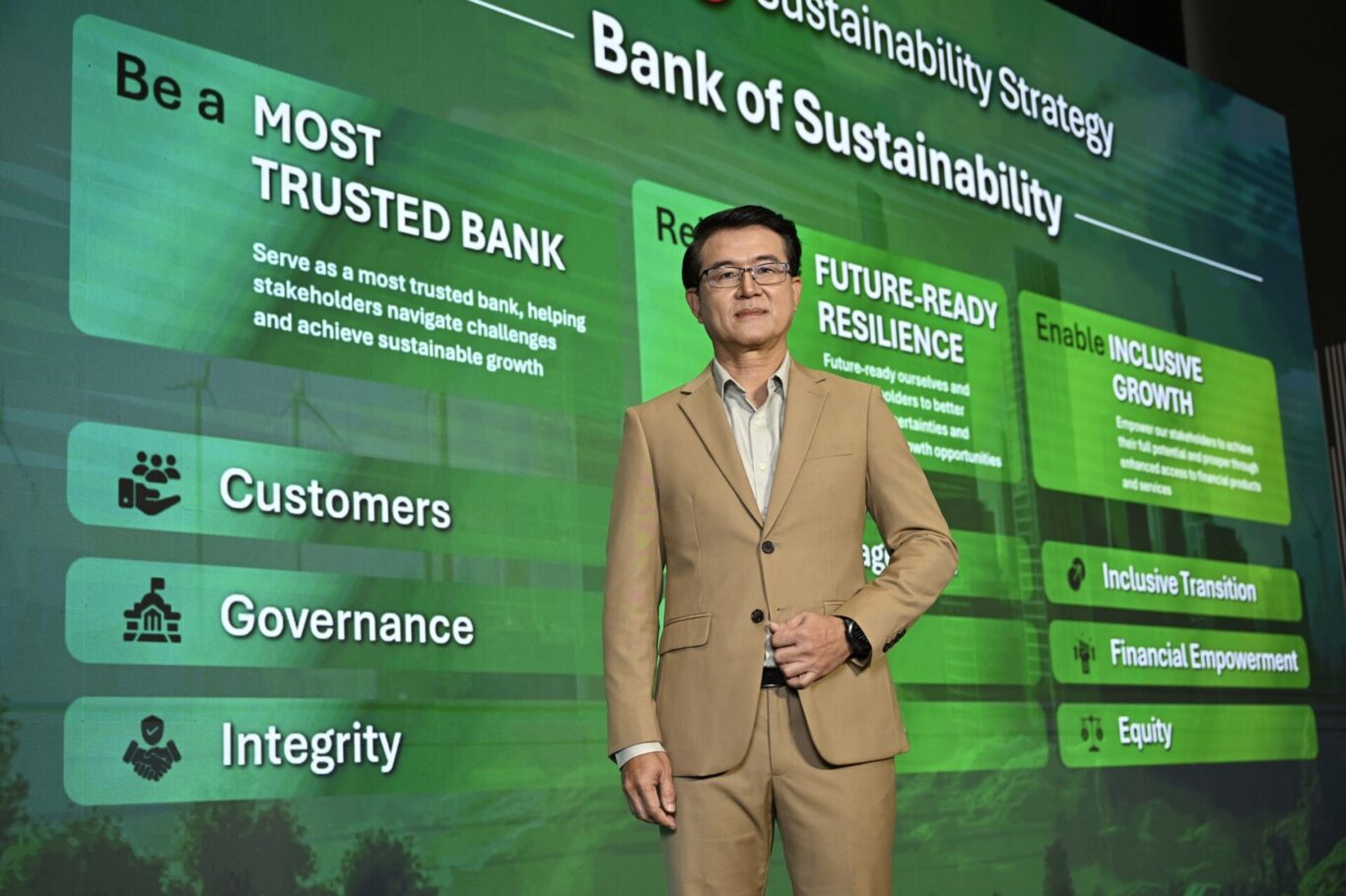• เร่งเครื่องเปลี่ยนผ่านด้านสภาพภูมิอากาศ ตามเป้าหมาย Net Zero Commitment ส่งมอบเม็ดเงินความยั่งยืนไปแล้วกว่า 173,000 ล้านบาท ช่วยลดการปล่อยก๊าซเรือนกระจกได้มากกว่า 2.74 ล้านตันคาร์บอนไดออกไซด์เทียบเท่า พร้อมปรับเพิ่มเป้าหมายการให้สินเชื่อและเงินลงทุนเพื่อความยั่งยืนกว่าสองเท่า เป็น 4-5 แสนล้านบาท ภายในปี 2573 (ค.ศ.2030) และตั้งเป้าหมายที่จะเป็น “The Most Comprehensive Climate Solution Provider – ผู้ให้บริการโซลูชันด้านสภาพภูมิอากาศที่ครอบคลุมที่สุด”