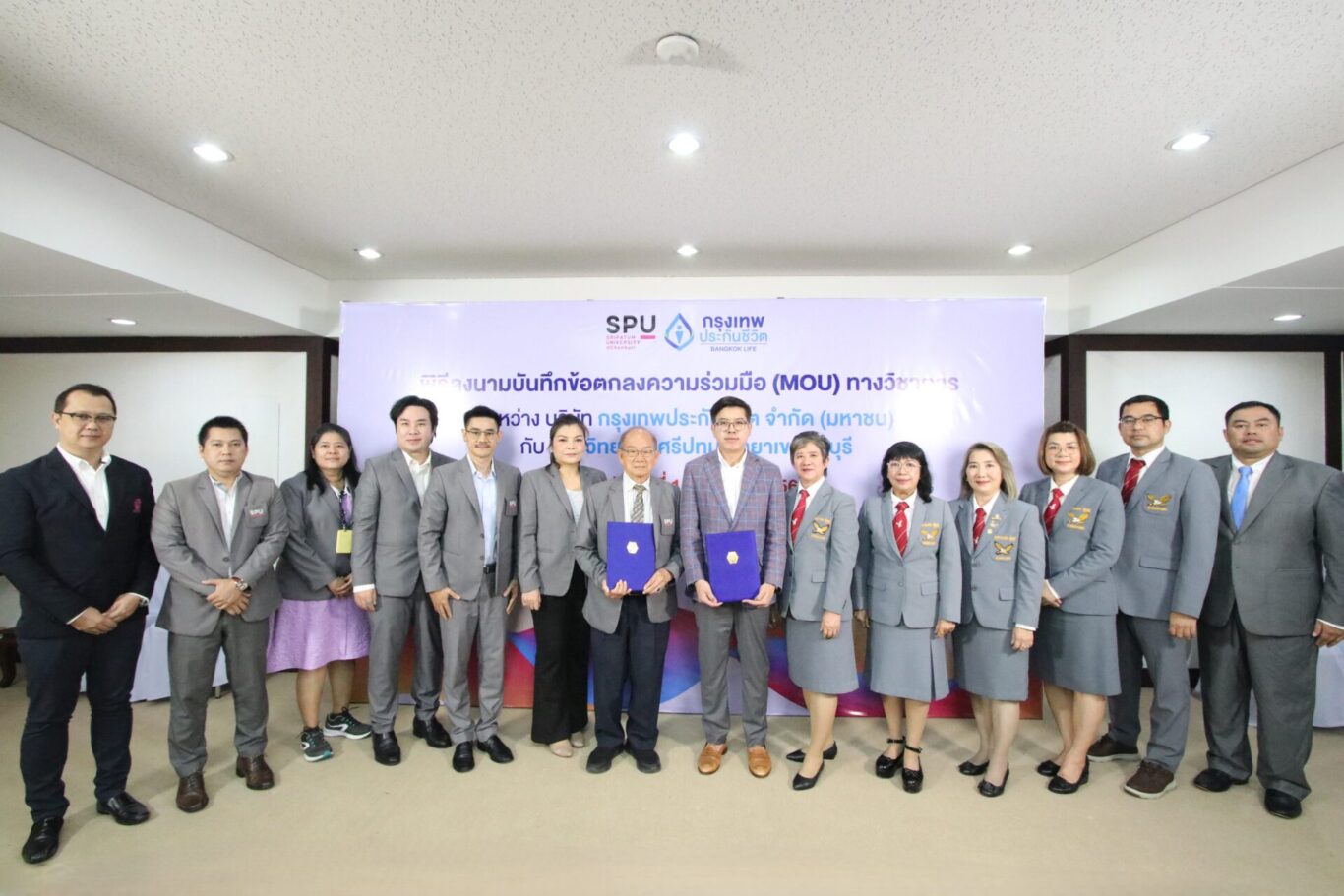 บริษัท กรุงเทพประกันชีวิต จำกัด (มหาชน) นำโดย นายจักรพงศ์ แสงแก้ว ผู้ช่วยผู้จัดการใหญ่ สายงานตัวแทนและที่ปรึกษาทางการเงิน (ที่ 8 จากซ้าย) ลงนามบันทึกข้อตกลงความร่วมมือ (MOU) ทางวิชาการกับ มหาวิทยาลัยศรีปทุม วิทยาเขตชลบุรี โดย ผู้ช่วยศาสตราจารย์ ดร.สุเทพ อุสาหะ ผู้ช่วยอธิการบดี มหาวิทยาลัยศรีปทุม วิทยาเขตชลบุรี (ที่ 7 จากซ้าย) ในโครงการ Mini MBA Certified BLA & SPUC Leader 2025: Entrepreneurial Leaders of the New Era Transform Your Leadership, Transform Your Future โดยมีผู้บริหารฝ่ายขายระดับสูง ภาคตะวันออก ร่วมเป็นสักขีพยาน