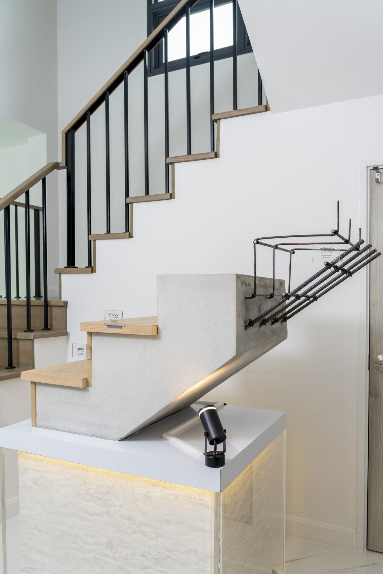 • บันไดที่มั่นใจได้ – ก่อสร้างบันไดด้วย คอนกรีตเสริมเหล็ก ที่ออกแบบตามหลักวิศวกรรมศาสตร์ ให้ความแข็งแรงและมั่นคง ปิดผิวด้วยไม้จริงวีเนียร์ไม้โอ๊คที่ให้สัมผัสธรรมชาติ ลวดลายเฉพาะ และปลอดภัยต่อสุขภาพ