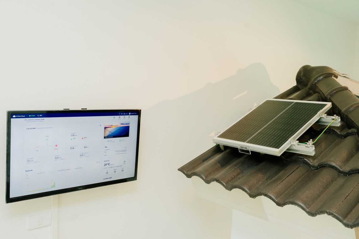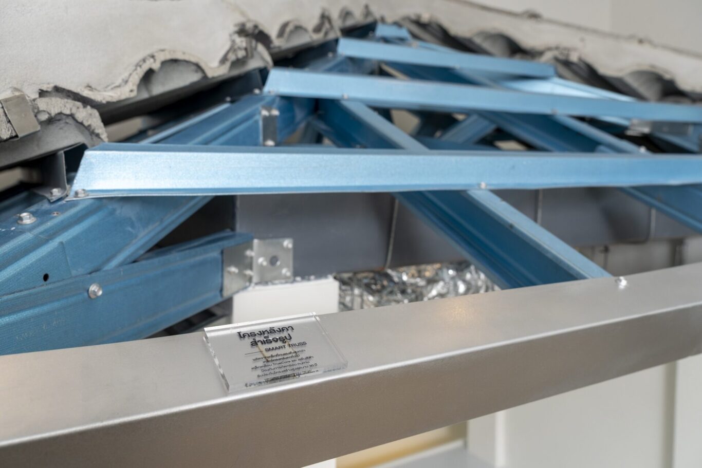 • หลังคามาตรฐานสูง – ชมโครงสร้างหลังคาที่ปกติลูกค้าไม่สามารถมองเห็นได้ โดยเลือกใช้ โครงเหล็กชุบกัลป์วาไนซ์* พร้อมกระเบื้องคอนกรีต เชิงชายเสริมป้องกันน้ำฝนซึม ฉนวนกันความร้อน และฝ้าชายคาไวนิลที่ช่วยระบายอากาศ ลดอุณหภูมิภายในบ้านได้ถึง 7 องศาเซลเซียส* ช่วยให้บ้านเย็นและหลังคามีอายุการใช้งานที่ยาวนาน อีกทั้งยังออกแบบให้รองรับการติดตั้ง Solar Roof ที่จะทำให้การผลิตพลังงานแสงอาทิตย์มีประสิทธิภาพสูงสุด พร้อมหน้าจอแสดงผล Tracking แบบ Real time ที่ให้ผู้อยู่อาศัยตรวจสอบการผลิตและการใช้ไฟฟ้าได้ทันที