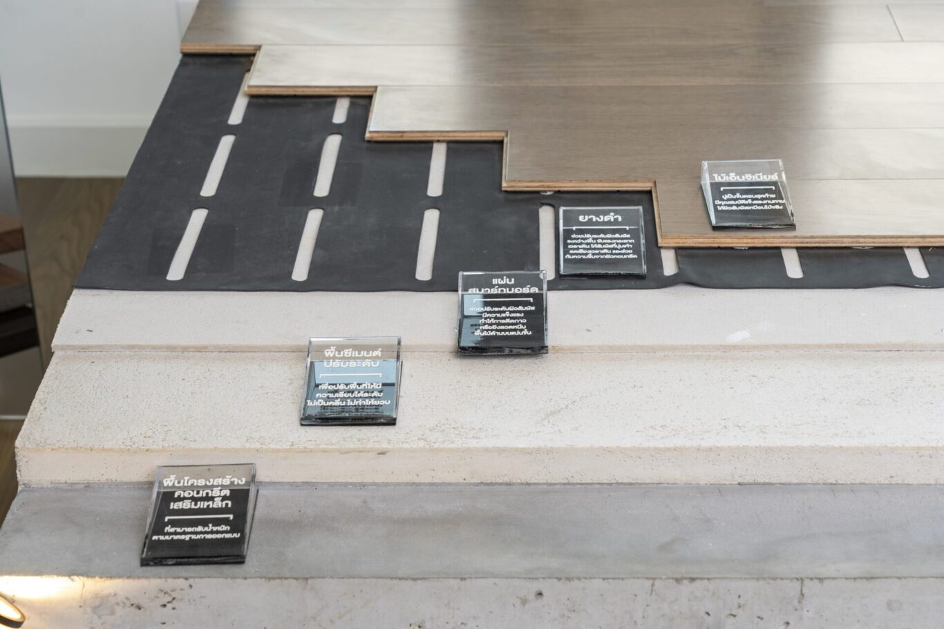 • วัสดุปูพื้นและกระเบื้องคุณภาพ* – จัดแสดงการติดตั้งกระเบื้องที่ได้มาตรฐาน โดยเลือกใช้ กระเบื้องพอร์ซเลน ที่มีความแข็งแรง ทนทาน และสวยงาม สำหรับห้องน้ำเลือกใช้ พอร์ซเลน ที่มีค่าการดูดซึมน้ำต่ำ และคุณสมบัติกันลื่น (R Value) เหมาะสมกับการใช้งานจริง