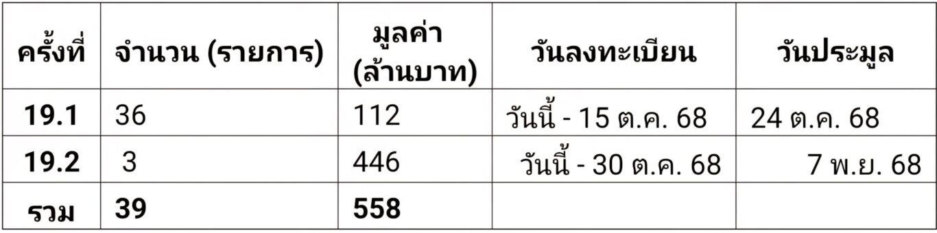ทั้งนี้ ผู้สนใจเข้าร่วมประมูลสามารถลงทะเบียนและยื่นซองประมูล พร้อมเอกสารประกอบการประมูลที่กำหนด โดยทรัพย์เพื่อที่อยู่อาศัยและเพื่อการลงทุน ราคาไม่เกิน 20 ลบ. (ครั้งที่ 19.1/2568) ภายในวันที่ 15 ต.ค. 2568 และกำหนดเปิดซองประมูลวันที่ 24 ต.ค. 2568 ส่วนทรัพย์ที่มีราคาสูงกว่า 20 ลบ. (ครั้งที่ 19.2/2568) ภายในวันที่ 30 ต.ค. 2568 และกำหนดเปิดซองประมูลวันที่ 7 พ.ย. 2568 เวลา 10.00 น. เป็นต้นไป ที่สำนักงานใหญ่ SAM อาคารซันทาวเวอร์ส ถ.วิภาวดีรังสิต กรุงเทพฯ