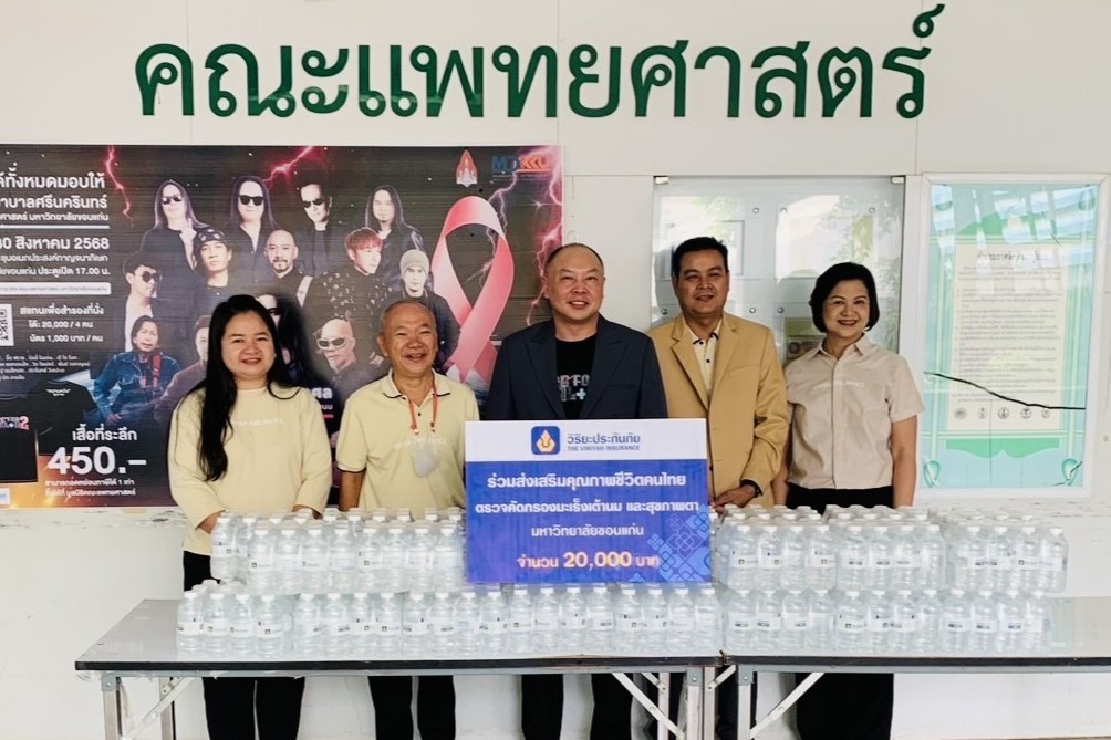 รศ.นพ.ธรรศ สงวนศักดิ์ รองคณบดีฝ่ายวิเทศสัมพันธ์และสื่อสารองค์กร คณะแพทยศาสตร์ มหาวิทยาลัยขอนแก่น รับมอบเงินสนับสนุน จำนวน 20,000 บาท พร้อมน้ำดื่ม จาก บริษัท วิริยะประกันภัย จำกัด (มหาชน) โดยมี นายเอกชัย สวนเกษ ผู้จัดการศูนย์ปฏิบัติการสินไหมทดแทนขอนแก่น เป็นผู้แทนมอบ ภายใต้โครงการ “Hope for Health 2” เพื่อสนับสนุนบริการตรวจคัดกรองโรคมะเร็งเต้านม และการตรวจสุขภาพตาสำหรับประชาชน โดยเฉพาะกลุ่มเสี่ยงที่อาจขาดโอกาสในการเข้าถึงบริการทางการแพทย์ ซึ่งการสนับสนุนงบประมาณในครั้งนี้ มีส่วนสำคัญในการป้องกันและลดความรุนแรงของโรคร้าย สร้างความตระหนักรู้ด้านการดูแลสุขภาพ ตลอดจนเสริมสร้างคุณภาพชีวิตที่ดีให้กับประชาชนในพื้นที่ต่อไป ณ มหาวิทยาลัยขอนแก่น ต.ในเมือง อ.เมืองฯ จ.ขอนแก่น