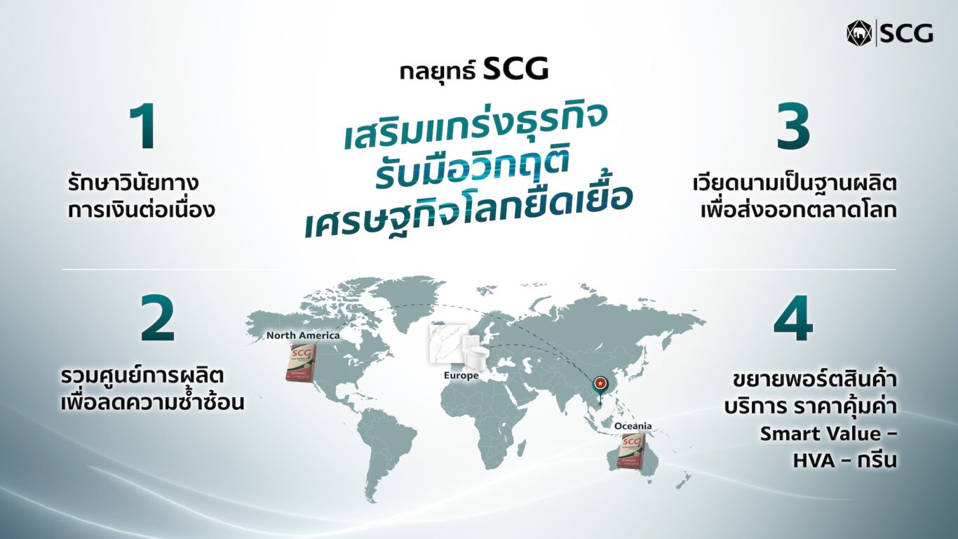 “เอสซีจีประเมินว่ามรสุมเศรษฐกิจรอบนี้จะยืดเยื้อและเต็มไปด้วยความไม่แน่นอนทั้งจากปัจจัยภายนอกและภายในประเทศ จึงเร่งปรับตัวตั้งแต่ปีที่ผ่านมา ทั้งรักษาวินัยทางการเงิน ลดต้นทุน รวมศูนย์การผลิตเพื่อลดความซ้ำซ้อน ปรับโครงสร้างธุรกิจ ตลอดจนพัฒนาสินค้า Smart Value–HVA–กรีน ตอบโจทย์ตลาดทุกระดับ และขยายตลาดใหม่ ทำให้มีกระแสเงินสดแกร่ง ผลการดำเนินงานธุรกิจมั่นคง” นายธรรมศักดิ์ กล่าว