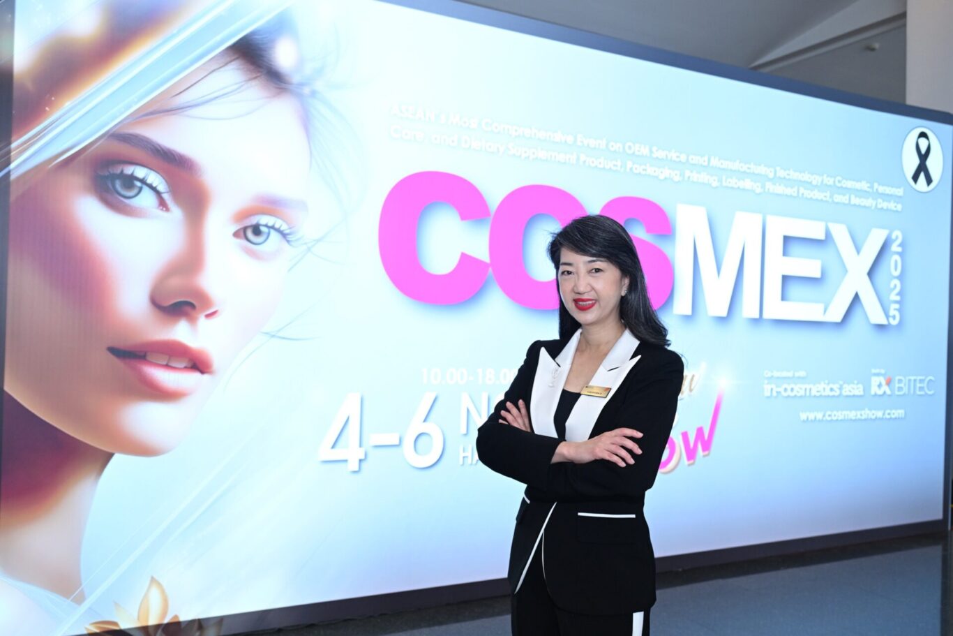 นางวราภรณ์ ธรรมจรีย์ กรรมการผู้จัดการ อาร์เอ็กซ์ ไบเทค (RX BITEC) ในฐานะผู้จัดงาน COSMEX กล่าวว่า “งาน COSMEX เป็นเวทีสำคัญที่ช่วยขับเคลื่อนการเติบโตของอุตสาหกรรมความงามในหลายมิติ ไม่ว่าจะเป็นการเปิดโอกาสให้ผู้ประกอบการได้พบกับนวัตกรรมใหม่ ๆ จากต่างประเทศ การสร้างเครือข่ายธุรกิจทั้งในและต่างประเทศ รวมถึงการส่งเสริมแบรนด์ในภูมิภาคอาเซียนให้สามารถแข่งขันในตลาดโลกได้อย่างมั่นใจ COSMEX จึงไม่ได้เป็นเพียงแค่งานแสดงสินค้า แต่เป็นเวทีกำเนิดและบ่มเพาะแบรนด์ให้เติบโตอย่างมีคุณภาพและมีเอกลักษณ์ในแบบเฉพาะของตน อีกทั้งยังเป็นจุดเชื่อมโยงผู้ประกอบการในอาเซียนและอีกหลายประเทศ เป็นพื้นที่ที่แบรนด์จากประเทศเพื่อนบ้านได้มาแลกเปลี่ยน เรียนรู้ และร่วมกันสร้างมาตรฐานใหม่ของ ASEAN Beauty ที่มีความหลากหลายแต่แข็งแรงในเวทีโลก ทำให้บทบาทสำคัญของงานนี้ คือการผลักดันให้ภูมิภาคของเรากลายเป็นศูนย์กลางด้านความงามที่มีอัตลักษณ์และศักยภาพสูง”