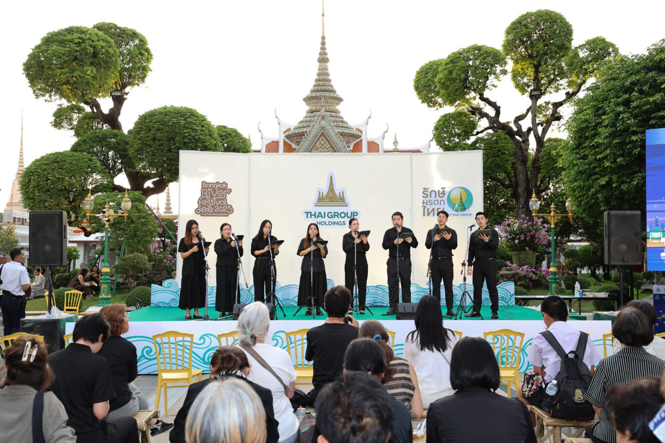 ภายในงาน ได้รับเกียรติจาก นายบวรศักดิ์ อุวรรณโณ (กลางภาพ) รองนายกรัฐมนตรี เยี่ยมชมกิจกรรม “รักษ์มรดกไทย BY THAI GROUP” ณ ลานอรุณ พร้อมด้วย นางสาวซาบีดา ไทยเศรษฐ์ (คนที่ 7 จากซ้าย) รัฐมนตรีว่าการกระทรวงวัฒนธรรม นายสุรพล เศวตเศรนี (คนที่ 5 จากขวา) ประธานการจัดงาน River Festival 2025 สายน้ำแห่งวัฒนธรรมไทย และผู้บริหารกระทรวงวัฒนธรรม ร่วมถ่ายภาพ โดยมี นายโชติพัฒน์ พีชานนท์ (คนที่ 6 จากขวา) ประธานกรรมการบริหาร และ นางอาทินันท์ พีชานนท์ (คนที่ 7 จากขวา) รองประธานกรรมการบริหาร บริษัท ไทยกรุ๊ป โฮลดิ้งส์ จำกัด (มหาชน) ให้การต้อนรับ เมื่อวันที่ 5 พฤศจิกายน ที่ผ่านมา