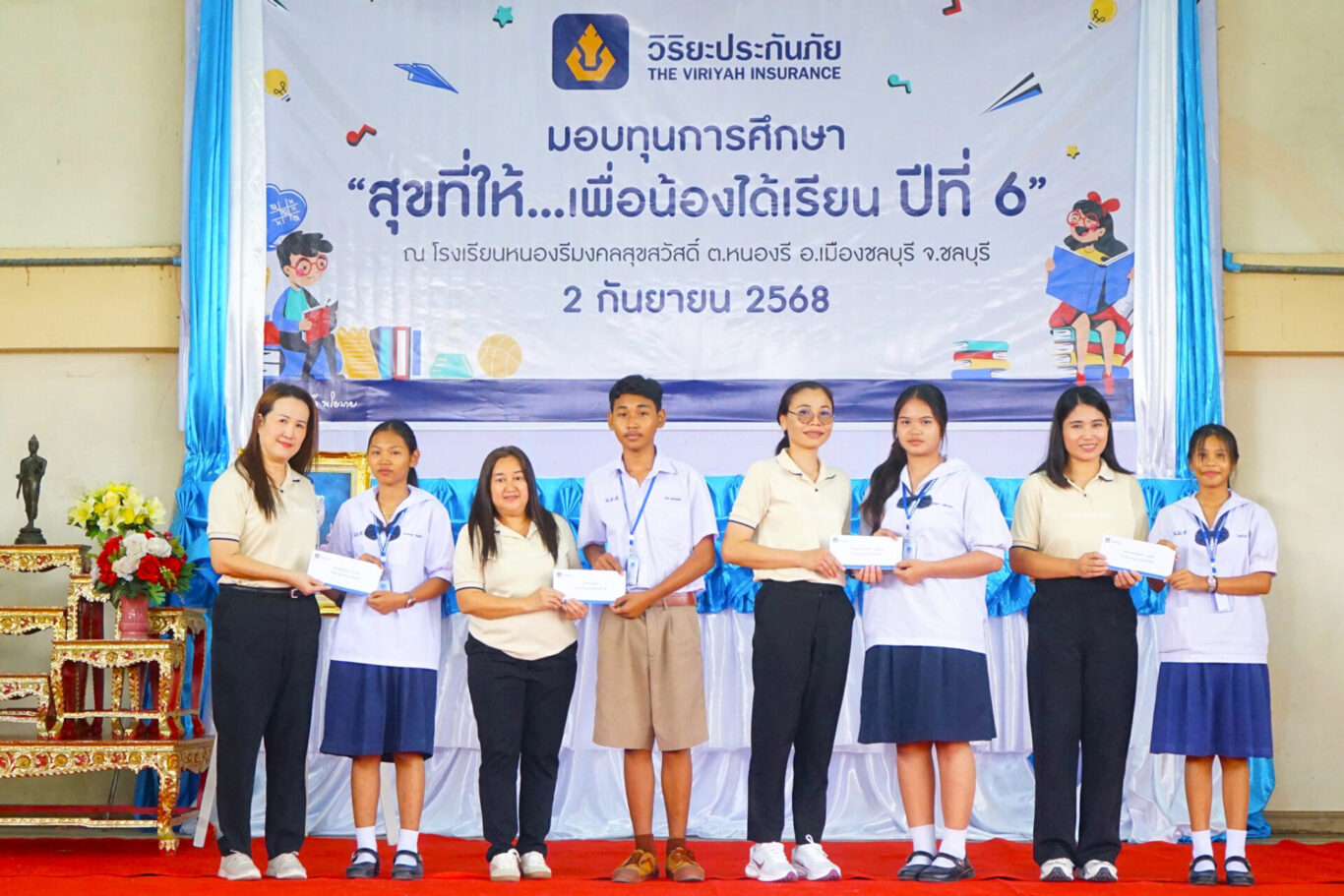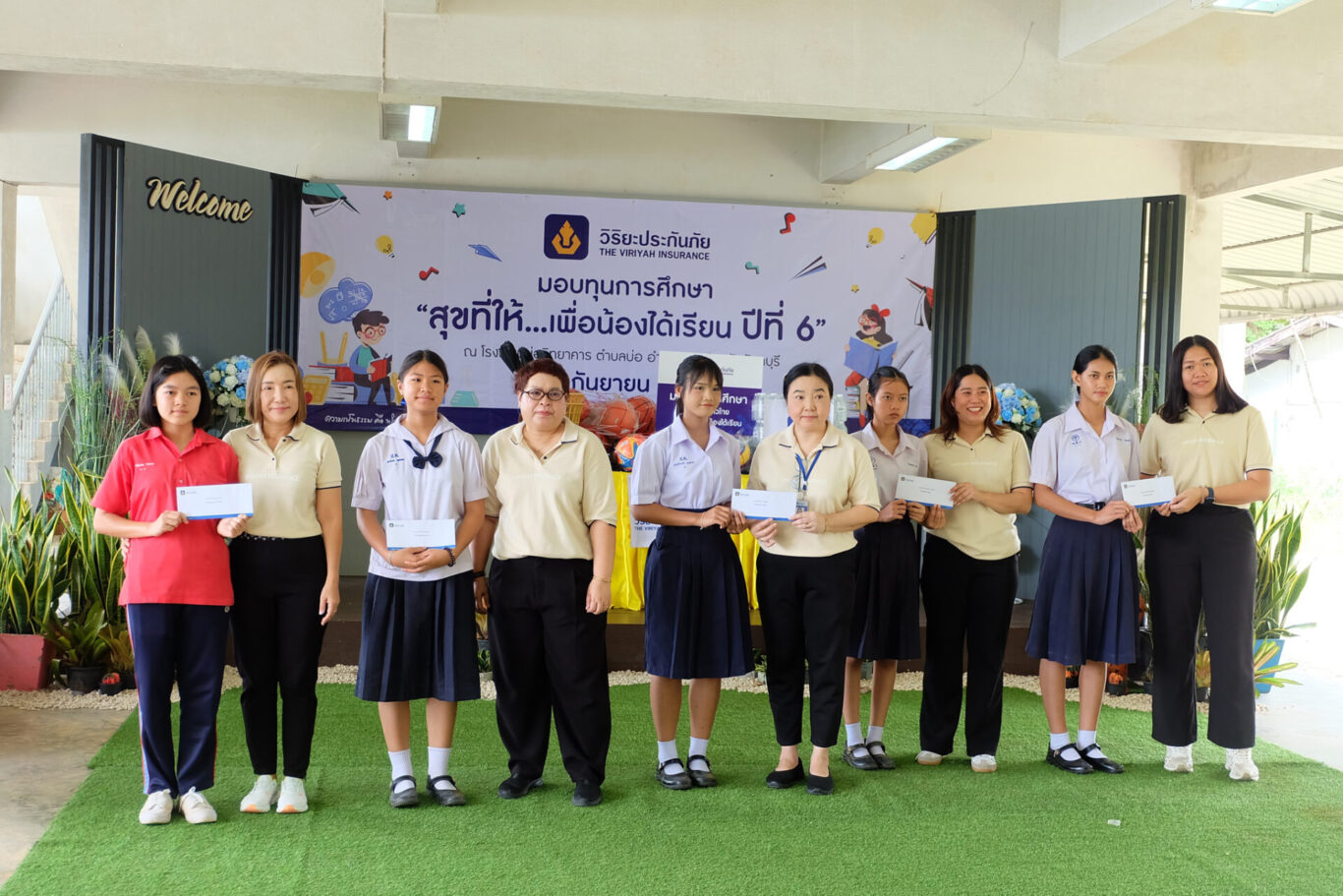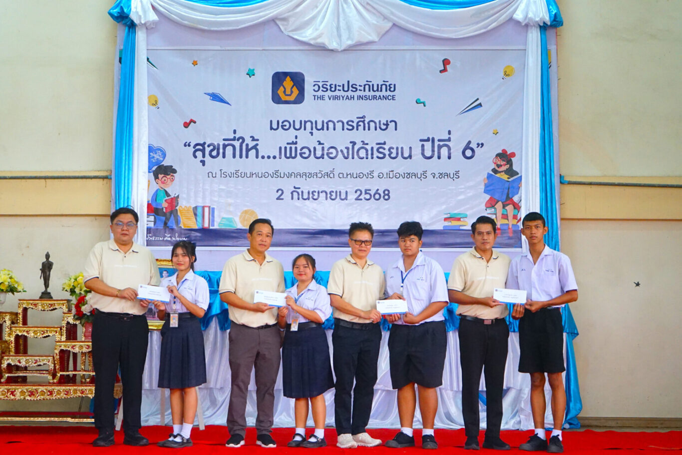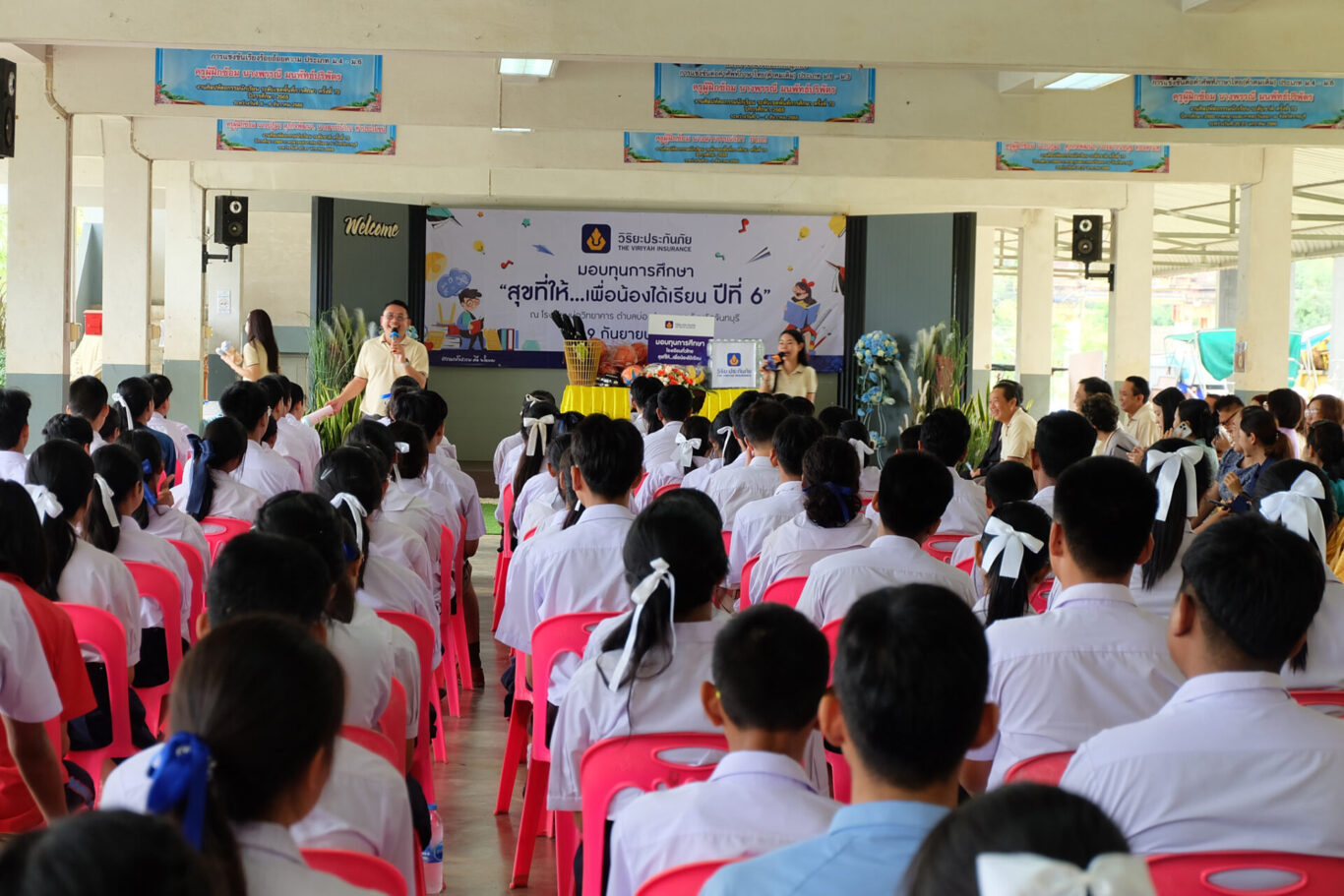 นายเธียรวิทย์ หาญเมธีคุณา ผู้จัดการฝ่ายปฏิบัติการภาค 3 (ภาคตะวันออก) ด้านสาขา และ นายพงษ์ทิวา กฤษณพันธุ์ ผู้จัดการฝ่ายปฏิบัติการภาค 3 (ภาคตะวันออก) ด้านศูนย์ปฏิบัติการสินไหมทดแทน บริษัท วิริยะประกันภัย จำกัด (มหาชน) เป็นผู้แทนมอบทุนการศึกษา จำนวน 228 ทุน เป็นเงิน 228,000 บาท และทุนสนับสนุนสื่อการเรียนรู้ เป็นเงิน 115,000 บาท รวมทั้งสิ้น 343,000 บาท ภายใต้โครงการ “สุขที่ให้…เพื่อน้องได้เรียน” ปีที่ 6 เพื่อส่งเสริมโอกาสทางการศึกษาให้กับนักเรียนที่มีผลการเรียนดีแต่ขาดแคลนทุนทรัพย์