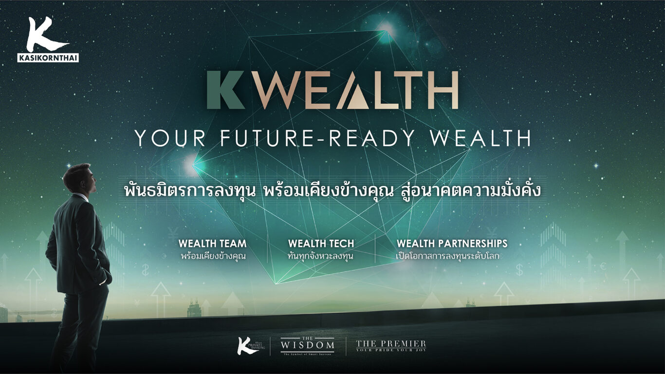 ธนาคารกสิกรไทย ตอกย้ำความเป็นผู้นำอันดับ 1 ด้านบริหารความมั่งคั่ง ยกระดับ K WEALTH เป็น “Lifelong Trusted Advisor ที่ปรึกษาด้านการลงทุนที่ลูกค้าไว้ใจในทุกช่วงชีวิต” ศูนย์รวมความเชี่ยวชาญในการบริหารความมั่งคั่ง พร้อมโซลูชันที่ครอบคลุม การเงิน การลงทุน ธุรกิจ และการดูแลคุ้มครองรอบด้าน ภายใต้คอนเซ็ปต์ “Your Future-Ready Wealth พันธมิตรการลงทุน พร้อมเคียงข้างคุณ สู่อนาคตความมั่งคั่ง” มุ่งเสริมแกร่งให้นักลงทุนไทยรับมือปัจจัยผันผวนของ VUCA ทั้งเศรษฐกิจ ตลาดทุน และภูมิรัฐศาสตร์ โดยผสาน 3 ศักยภาพของ Wealth Team, Wealth Tech และ Wealth Partnerships