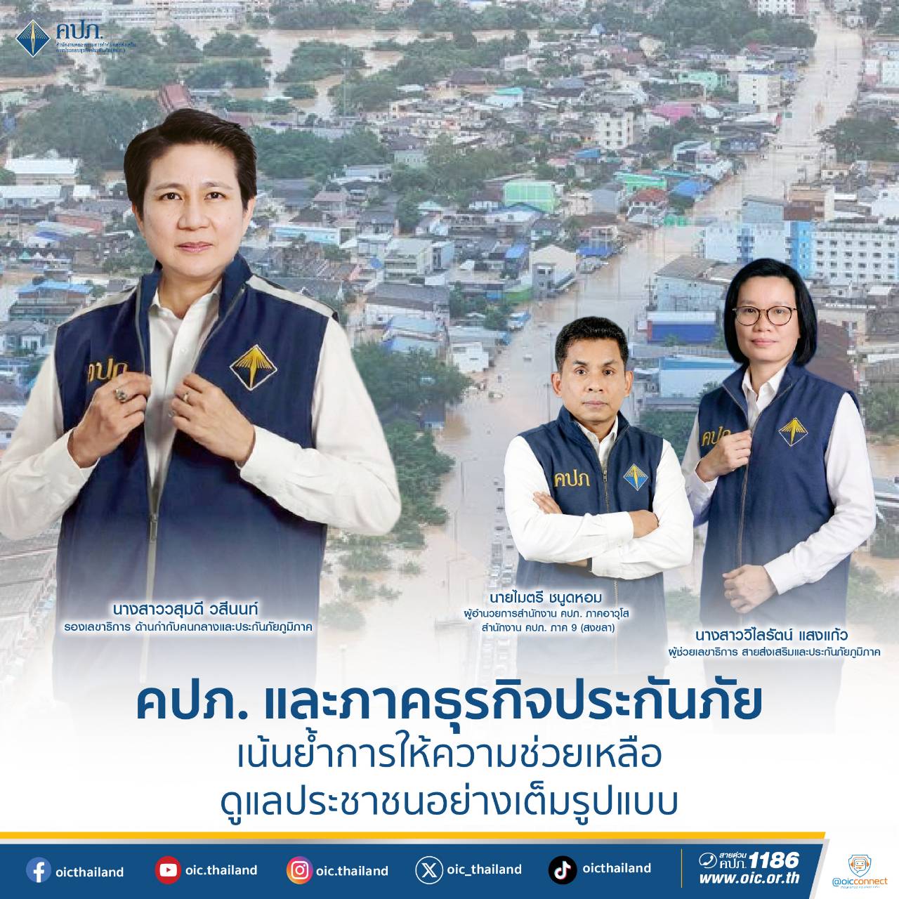 สำนักงาน คปภ. และภาคอุตสาหกรรมประกันภัย ขอเป็นกำลังใจให้พี่น้องชาวภาคใต้ และภาคอื่น ๆ ที่กำลังประสบเหตุอุทกภัยในขณะนี้ และพร้อมเป็นอีกหนึ่งหน่วยงานสำคัญในการสนับสนุนและยืนเคียงข้างเพื่อดูแลและคุ้มครองด้านการประกันภัยอย่างเต็มรูปแบบ และขอให้ประชาชนไม่ต้องเป็นกังวลในการขอเคลมประกันภัย ทั้งนี้ เพื่อให้ทุกภาคส่วนผ่านพ้นวิกฤตในครั้งนี้ไปด้วยกันอย่างปลอดภัย และสามารถฟื้นฟูความเสียหายทั้งในด้านสังคมและเศรษฐกิจได้โดยเร็วที่สุด