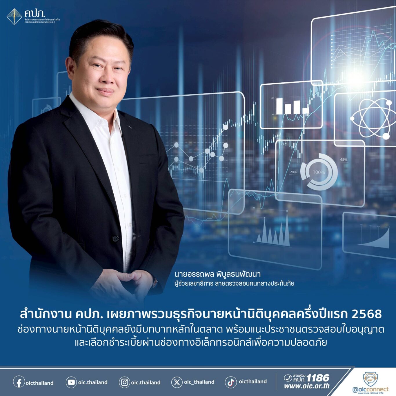 สำนักงานคณะกรรมการกำกับและส่งเสริมการประกอบธุรกิจประกันภัย (สำนักงาน คปภ.) เปิดเผยสถิติ ธุรกิจนายหน้านิติบุคคลครึ่งปีแรก (มกราคม–มิถุนายน 2568) โดยมี นายหน้านิติบุคคลที่ใบอนุญาตยังมีผลบังคับรวมทั้งสิ้น 750 บริษัท แบ่งเป็น นายหน้าประกันชีวิต 118 บริษัท นายหน้าประกันวินาศภัย 500 บริษัท และนายหน้าที่ได้รับใบอนุญาตทั้งสองประเภท 132 บริษัท โดยในช่วงครึ่งปีแรก มีนายหน้านิติบุคคล รายใหม่ 11 บริษัท ขณะที่มีนายหน้าที่สิ้นสุดใบอนุญาตและยกเลิกใบอนุญาต รวม 21 บริษัท ส่งผลให้จำนวนรวมของนายหน้านิติบุคคลลดลงเล็กน้อยเมื่อเทียบกับช่วงเดียวกันของปีก่อน