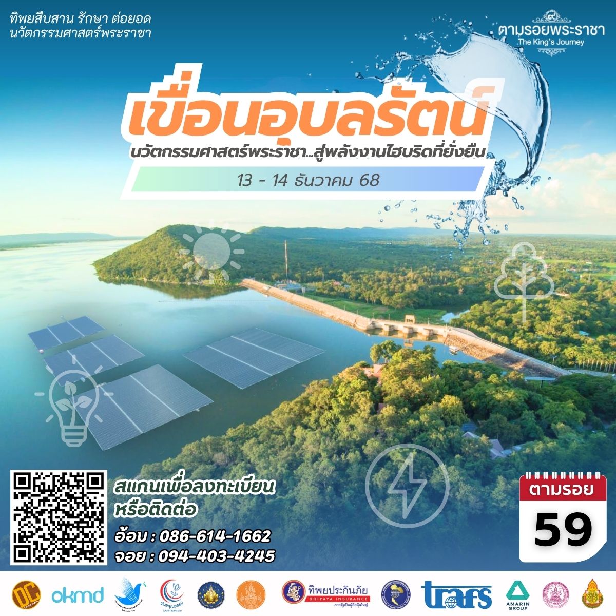 ทิพยประกันภัย ขอเชิญชวนร่วมโครงการทิพยสืบสาน รักษา ต่อยอด นวัตกรรมศาสตร์พระราชา ครั้งที่ 59 ณ เขื่อนอุบลรัตน์ จังหวัดขอนแก่น เรียนรู้การบริหารจัดการน้ำและพลังงานอย่างยั่งยืน ผ่านตัวอย่างของเขื่อนอุบลรัตน์ เขื่อนอเนกประสงค์แห่งที่ 2 ของประเทศ และเป็นเขื่อนผลิตไฟฟ้าพลังน้ำแห่งแรกของภาคะวันออกเฉียงเหนือ ผู้เข้าร่วมจะได้สัมผัสแนวคิดพลังงานสะอาดผ่านการศึกษาระบบ โซลาร์เซลล์ลอยน้ำไฮบริด ที่ผสานพลังงานน้ำและแสงอาทิตย์เข้าด้วยกัน และร่วมกิจกรรม ปลูกป่า ปล่อยปลา Forest Therapy (อาบป่า) ก้าวแห่งการตื่นรู้ wakening Walk เรียนรู้การฟื้นฟูสมดุลระหว่างมนุษย์กับธรรมชาติ สะท้อนแนวคิดของ ศาสตร์พระราชา ที่ทรงเน้น “การพัฒนาอย่างเข้าใจธรรมชาติ” ใช้ทรัพยากรอย่างรู้คุณค่า และสร้างความยั่งยืนให้กับสิ่งแวดล้อมอย่างแท้จริง