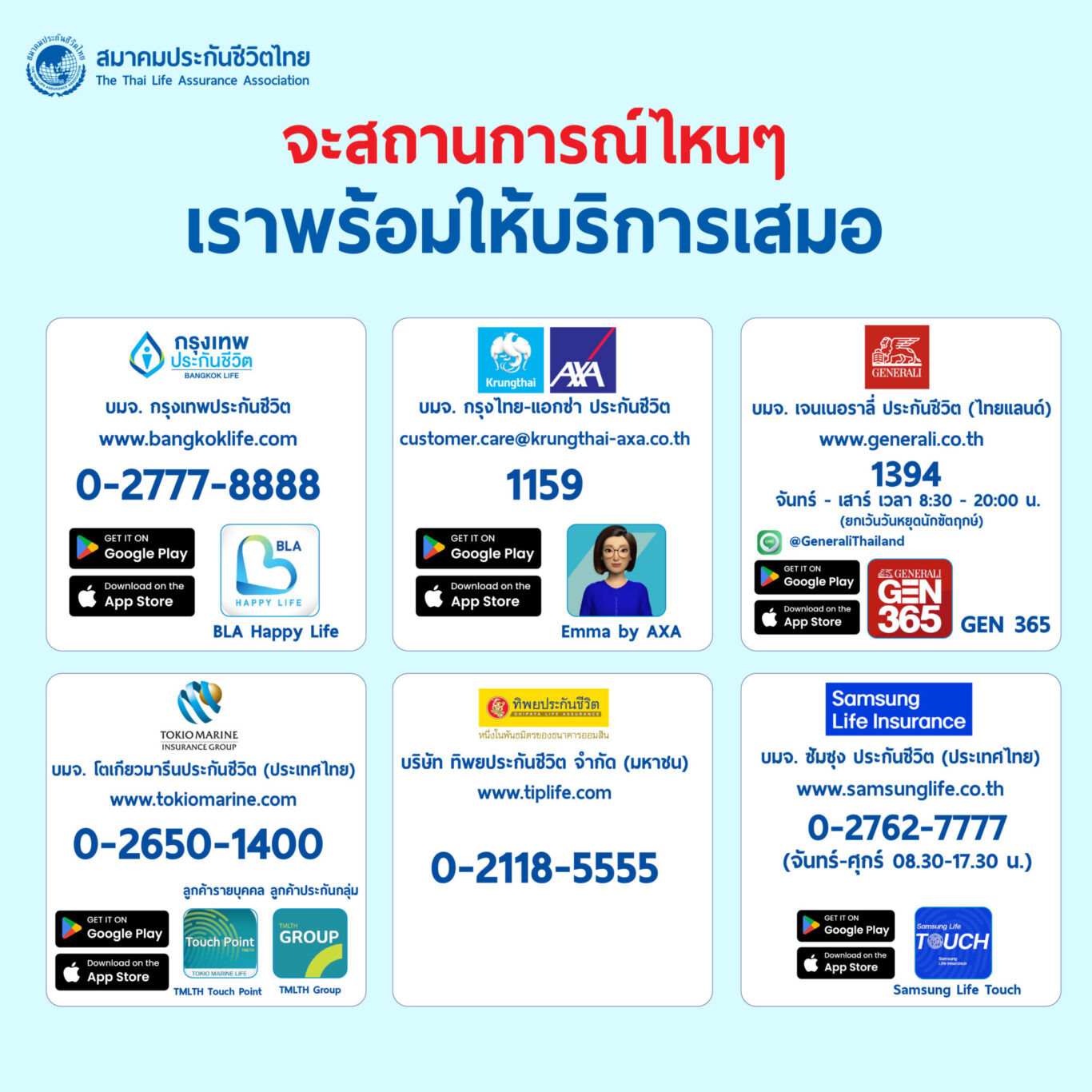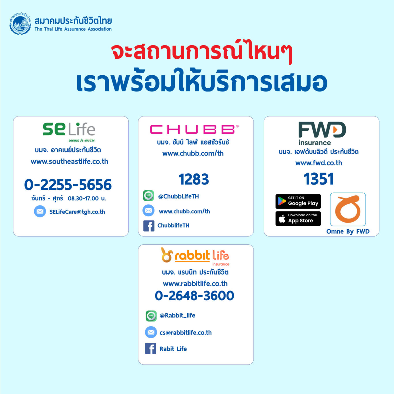 ในโอกาสนี้ สมาคมประกันชีวิตไทยขอส่งกำลังใจและความห่วงใยให้พี่น้องประชาชนในพื้นที่ภาคใต้ที่ได้รับผลกระทบจากอุทกภัย พร้อมทั้งขอให้ทายาทและผู้เอาประกันภัยทุกท่านตรวจสอบสถานะกรมธรรม์ของท่าน และระมัดระวังคัดกรองข้อมูลข่าวสารที่ได้รับ โดยเฉพาะจากช่องทางโซเชียลมีเดีย ระมัดระวังในการส่งต่อข้อมูลที่ไม่เป็นความจริง เพื่อป้องกันไม่ให้เกิดความเข้าใจผิด จนนำไปถึงการแอบอ้างหลอกลวงเอาข้อมูลส่วนบุคคลเพื่อเรียกร้องค่าสินไหมทดแทน โดยเฉพาะการรับจ้างเรียกร้องค่าสินไหม