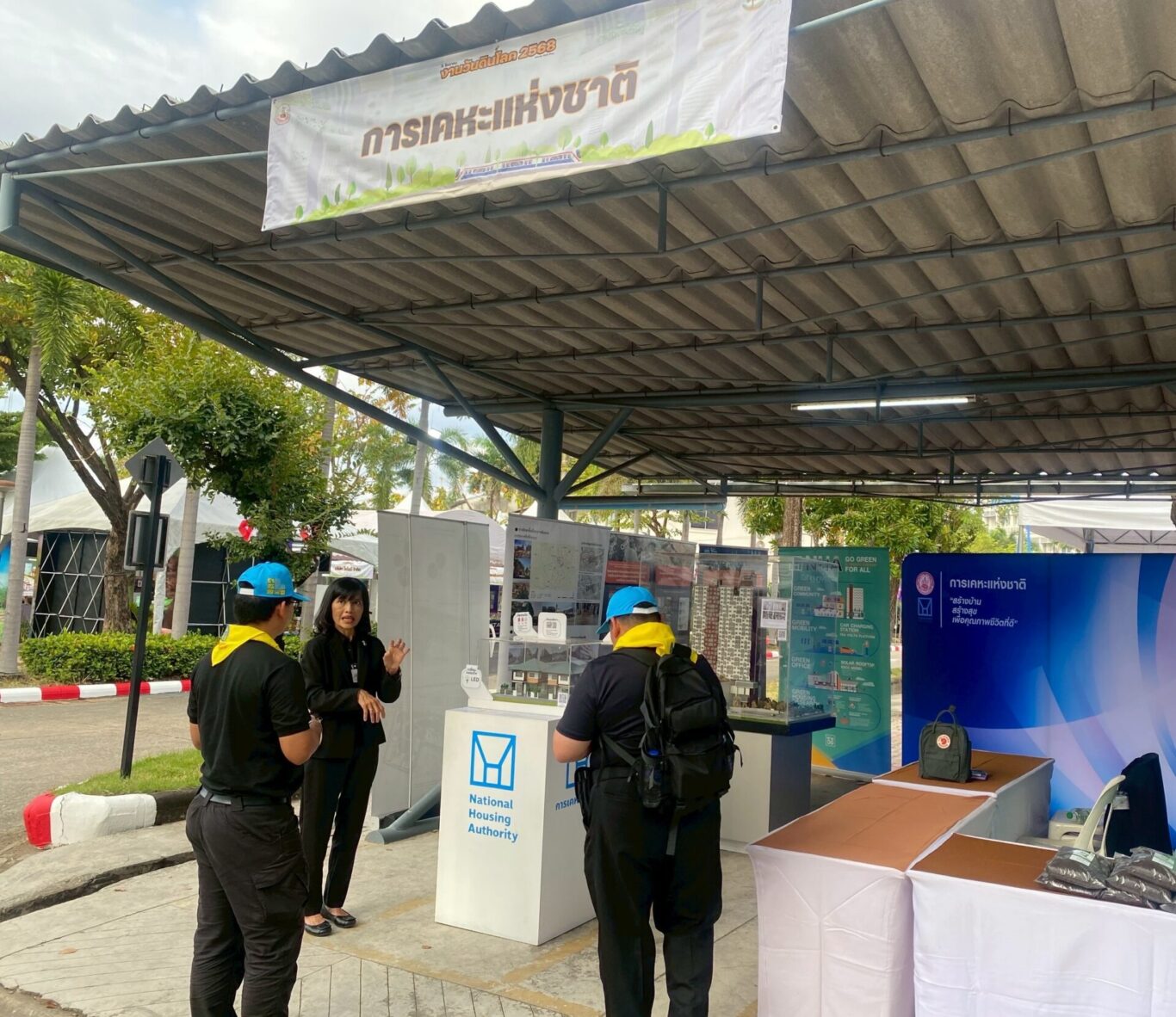 การเคหะแห่งชาติ ร่วมนำเสนอผลงานการพัฒนาโครงการที่อยู่อาศัยที่ออกแบบโดยคำนึงถึงการใช้ประโยชน์ที่ดินให้เกิดประโยชน์สูงสุด ประหยัดพลังงาน เป็นมิตรต่อสิ่งแวดล้อม เพื่อคนทั้งมวลตามแนวคิด Universal Design เน้นพื้นที่สีเขียว รวมถึงการนำเสนองานวิจัยด้านการพัฒนาที่อยู่อาศัยและวัสดุก่อสร้างที่เป็นมิตรต่อสิ่งแวดล้อม รักษ์ดินและผลิตภัณฑ์ชุมชน “ดินปลูก บางบัวทอง 1” จากโครงการบ้านเอื้ออาทรบางบัวทอง 1 มาจัดแสดงและจำหน่ายให้ผู้ร่วมงาน ณ กรมพัฒนาที่ดิน กรุงเทพมหานคร