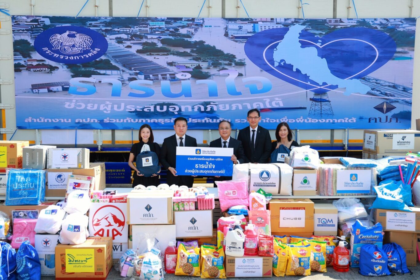 นายชูฉัตร ประมูลผล เลขาธิการคณะกรรมการกำกับและส่งเสริมการประกอบธุรกิจประกันภัย (คปภ.) รับมอบเครื่องอุปโภค – บริโภค จาก บริษัท วิริยะประกันภัย จำกัด (มหาชน) โดยมี นายภาคภูมิ วิริยะพันธุ์ ผู้ช่วยกรรมการผู้จัดการ เป็นผู้แทนมอบ ภายใต้โครงการ “ธารน้ำใจช่วยผู้ประสบอุทกภัยภาคใต้” ของศูนย์อำนวยการช่วยเหลือเครือข่ายวายุภักษ์ กระทรวงการคลัง เพื่อร่วมบรรเทาความเดือดร้อนแก่ผู้ประสบอุทกภัยที่ได้รับผลกระทบจากสถานการณ์น้ำท่วมภาคใต้ ให้ได้รับการฟื้นฟูเยียวยาและสามารถผ่านพ้นวิกฤตครั้งนี้ไปได้อย่างปลอดภัย ณ ลานอเนกประสงค์ สำนักงานคณะกรรมการกำกับและส่งเสริมการประกอบธุรกิจประกันภัย (คปภ.) เขตจตุจักร กรุงเทพฯ