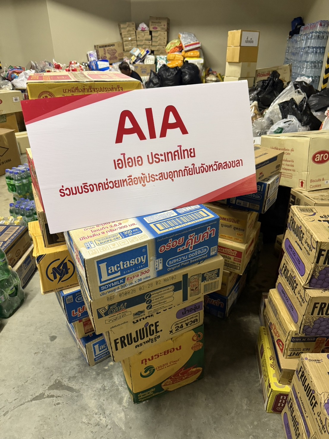 เอไอเอ ประเทศไทย เร่งส่งมอบความช่วยเหลือแก่ผู้ประสบอุทกภัยภาคใต้ ผ่านหน่วยงานทั้งภาครัฐและเอกชน นำโดย นายสุวิรัช พงศ์เสาวภาคย์ (ซ้ายสุด) ผู้อำนวยการฝ่ายกิจการภายนอก เอไอเอ ประเทศไทย เป็นตัวแทนร่วมมอบเครื่องอุปโภคบริโภคและของใช้จำเป็นผ่านโครงการ “ธารน้ำใจช่วยผู้ประสบอุทกภัยภาคใต้” โดยได้รับเกียรติ จากนายชูฉัตร ประมูลผล เลขาธิการคณะกรรมการกำกับและส่งเสริมการประกอบธุรกิจประกันภัย เป็นประธานรับมอบ เพื่อส่งต่อความช่วยเหลือไปยังประชาชนผู้ประสบมหาอุทกภัยในพื้นที่ภาคใต้ ตลอดจนช่วยฟื้นฟูให้กลับมาดำเนินชีวิตได้อย่างเข้มแข็ง