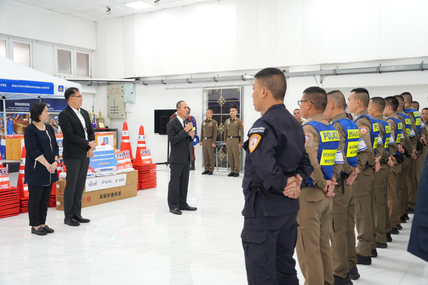 โดยพิธีมอบจัดขึ้น ณ ห้องประชุมกองกำกับการ 6 กองบังคับการตำรวจจราจร เขตจตุจักร กรุงเทพฯ ทั้งนี้ บริษัทฯ ได้ร่วมส่งเสริมการปฏิบัติภารกิจของตำรวจจราจรโครงการพระราชดำริ มาอย่างต่อเนื่องกว่า 20 ปี ทั้งการสนับสนุนประกันภัยอุบัติเหตุส่วนบุคคล (PA) ให้กับเจ้าหน้าที่ตำรวจจราจรโครงการพระราชดำริ รวมถึงการสนับสนุนอุปกรณ์จราจร อุปกรณ์ปฐมพยาบาล ตลอดจนอุปกรณ์รถจักรยานยนต์ เพื่อเสริมศักยภาพให้กับเจ้าหน้าที่ในการปฏิบัติงานได้อย่างสะดวก ส่งเสริมการสัญจรที่ปลอดภัย และยกระดับคุณภาพชีวิตของผู้ใช้รถใช้ถนนในสังคมไทยอย่างยั่งยืน