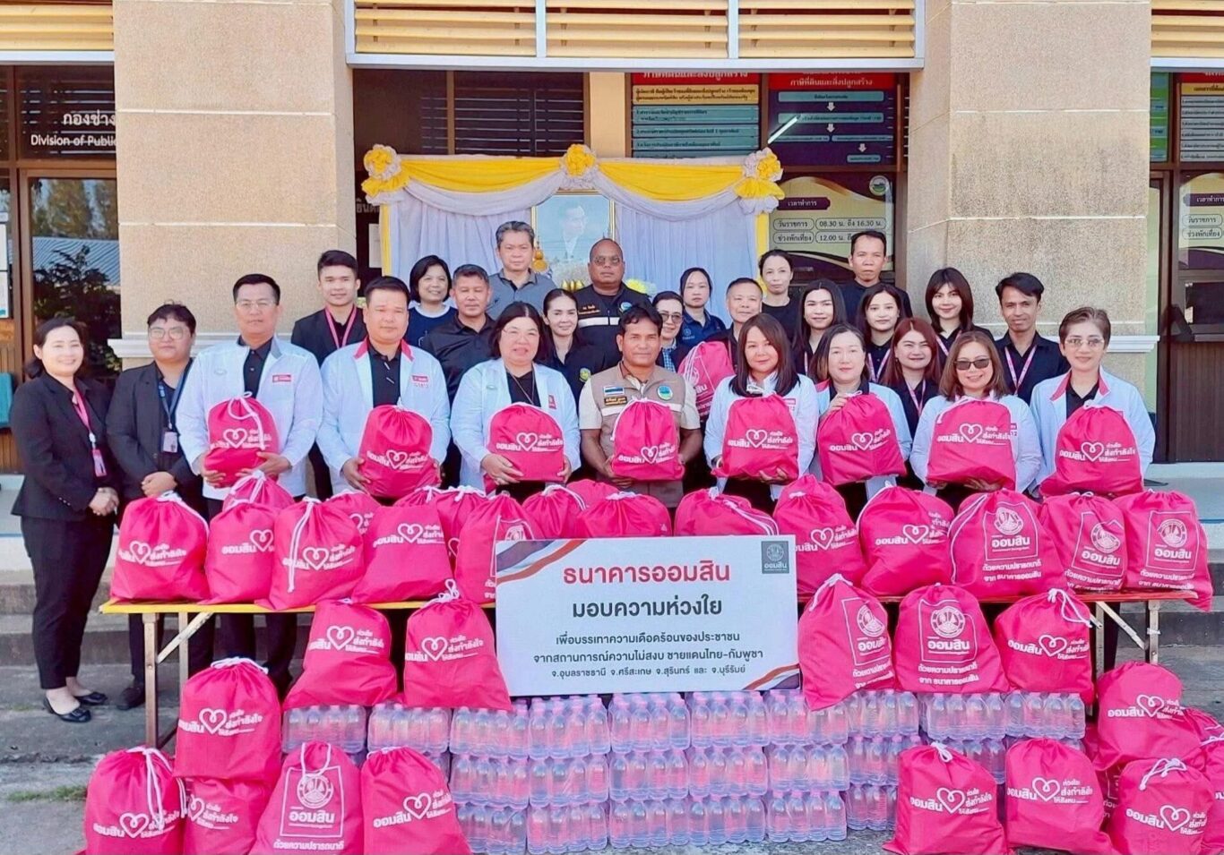นอกจากนี้ ธนาคารยังคงสนับสนุนงบประมาณให้ความช่วยเหลือด้านมนุษยธรรมอย่างต่อเนื่องนับตั้งแต่เกิดเหตุการณ์ปะทะ ตลอดแนวชายแดนไทย-กัมพูชา โดยการสนับสนุนภารกิจของศูนย์พักพิง ได้แก่ การมอบถุงยังชีพ “ออมสินห่วงใย” รวมถึงเครื่องอุปโภคบริโภคที่จำเป็น และน้ำดื่ม แก่ผู้อพยพ และกำลังพลในพื้นที่จังหวัดสุรินทร์ ศรีสะเกษ บุรีรัมย์ อุบลราชธานี สระแก้ว และจังหวัดตราด รวมมูลค่ากว่า 7.3 ล้านบาท ธนาคารออมสินขอแสดงความห่วงใยและส่งกำลังใจไปยังทหารและตำรวจตระเวนชายแดนที่ยังคงปฏิบัติหน้าที่อย่างเข้มแข็งอยู่ในพื้นที่ ตลอดจนครอบครัวของทหารกล้าผู้เสียสละชีวิตปกป้องอธิปไตยของประเทศ และพี่น้องประชาชนที่ได้รับผลกระทบ โดยมุ่งหวังว่าสถานการณ์จะคลี่คลายและกลับสู่สภาวะปกติในเร็ววัน
