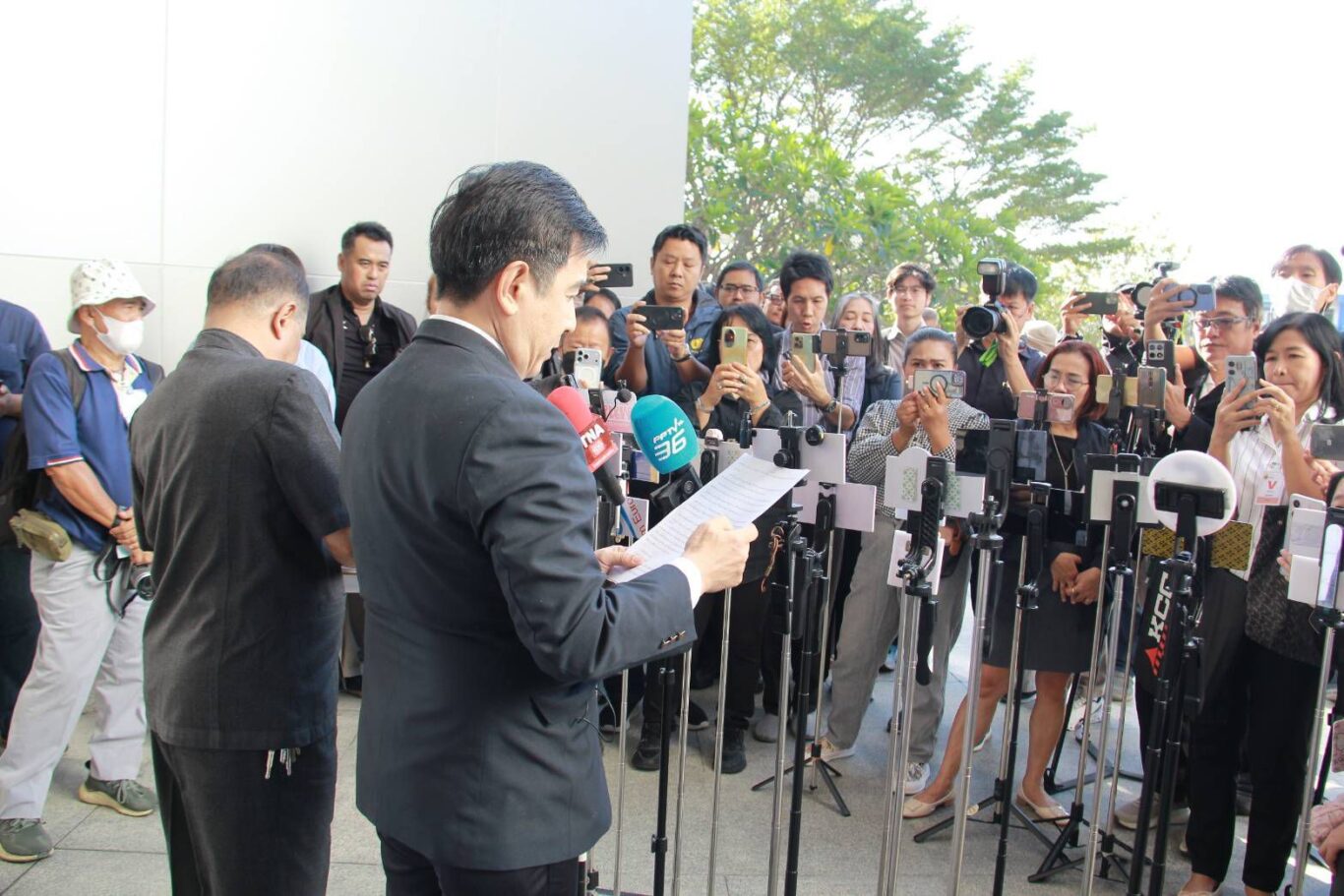 นอกจากนี้ ตนยังอยากฝากพี่น้องสื่อมวลชนพิจารณาภาพประธานบริหารสื่อยักษ์ใหญ่ บ.แพลน บี มีเดีย จำกัด (มหาชน) อยู่ในงานเลี้ยงร่วมเฟรมเดียวกับบุคคลที่ถูกกล่าวถึงว่ามีความเกี่ยวพันกับสแกมเมอร์อย่างมากในขณะนี้ ว่ามีความเหมาะสมหรือไม่? อีกทั้งอาจมีคำถามว่า “การดำเนินการร้องเรียนเรื่องเจ้าหน้าที่ ขสมก. ปฏิบัติหน้าที่ทุจริต ปลอมลายมือชื่อ ใช้เอกสารปลอม ใช้อำนาจโดยทุจริต ปฏิบัติราชการโดยมิชอบ ร่วมกับ บริษัท แพลน บี มีเดีย จำกัด (มหาชน) กับพวก เปลี่ยนแปลงแก้ไขสัมปทานเช่าพื้นที่โฆษณาบนรถยูโรทู ของ ขสมก. มากว่า 10 ปี เป็นเหตุให้กระผมเสียหายกว่า 5,000 ล้านบาท และได้ดำเนินการร้องเรียนผ่านหลายองค์กรในช่วงต้นปี 2568 ที่ผ่านมา แต่จู่ ๆ กลับเงียบหายไปจึงขอชี้แจงต่อพี่น้องสื่อว่า มีบุคคลผู้หนึ่งสมมติชื่อ “หม่อมหลวง ส.” มาพบกับกระผมแล้วแจ้งให้ทราบว่าขอให้หยุดการร้องเรียนเจ้าหน้าที่ ขสมก. และ บริษัท แพลน บี มีเดีย จำกัด (มหาชน) กับพวก ที่ร่วมกันทุจริตเปลี่ยนแปลงสัมปทานเช่าพื้นที่โฆษณาบนรถโดยสารยูโรทู แล้วจะดำเนินการไกล่เกลี่ยเคลียร์ให้ปัญหาทั้งหมดให้จบและหมดปัญหาระหว่างกันซึ่งจากการที่ “หม่อมหลวง ส.” แจ้งให้ทราบ ทำให้ผมได้หลงเชื่ออย่างสนิทใจ และหยุดการร้องเรียนดังกล่าวมาเป็นเวลาเกือบ 1 ปี ทำให้ผมสูญเสียโอกาสในการร้องเรียนเพื่อขอความเป็นธรรม และสูญเสียโอกาสทางธุรกิจขณะนี้ผมได้ดำเนินการร้องทุกข์กับสำนักงานตำรวจในการแอบอ้างเบื้องสูงให้หยุดการร้องเรียนดังกล่าวเป็นที่เรียบร้อยแล้ว หากสื่อท่านใดต้องการทราบรายละเอียดเรื่องนี้ กรุณาติดต่อกับผมได้โดยตรง หรือติดตามทางสื่อออนไลน์ “โปรมวยโลกก่อเกียรติร้องทุกข์”