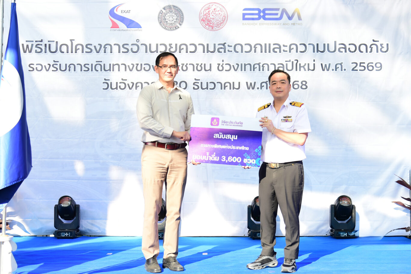 นายสุรเชษฐ์ เหล่าพูลสุข ผู้ว่าการการทางพิเศษแห่งประเทศไทย (กทพ.) กระทรวงคมนาคม รับมอบน้ำดื่ม จำนวน 3,600 ขวด จาก บริษัท วิริยะประกันภัย จำกัด (มหาชน) โดยมี นายพงศ์พันธ์ ประภาศิริลักษณ์ ผู้จัดการฝ่ายสื่อสารองค์กร เป็นผู้แทนมอบ ภายใต้ “โครงการอำนวยความสะดวกและความปลอดภัยรองรับการเดินทางของประชาชน ช่วงเทศกาลปีใหม่ พ.ศ. 2569” เพื่ออำนวยความสะดวกให้กับประชาชนผู้ใช้บริการทางพิเศษเดินทางเข้า – ออก กรุงเทพมหานคร ได้เดินทางปลอดภัยและอุ่นใจตลอดช่วงเทศกาลปีใหม่ โดยพิธีมอบจัดขึ้น ณ อาคารศูนย์บริหารการทางพิเศษ การทางพิเศษแห่งประเทศไทย แขวงบางกะปิ เขตห้วยขวาง กรุงเทพฯ