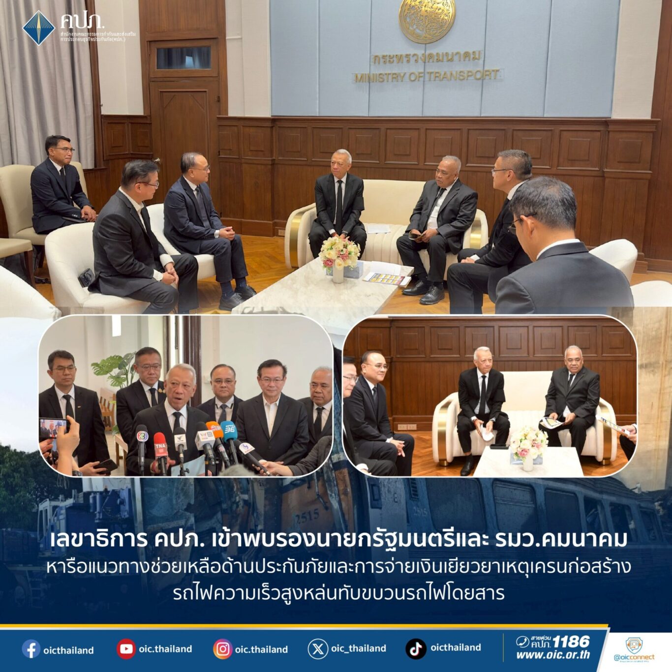 สำนักงาน คปภ. พร้อมประสานงานร่วมกับหน่วยงานที่เกี่ยวข้อง เพื่อสนับสนุนการดูแลสิทธิประโยชน์ด้านประกันภัยของผู้ประสบเหตุอย่างต่อเนื่อง และร่วมผลักดันแนวทางการยกระดับมาตรฐานการคุ้มครองผู้โดยสารในระบบขนส่งสาธารณะ โดยเฉพาะการศึกษาแนวทางบรรจุประกันภัยการเดินทางโดยรถไฟ เพื่อให้ผู้โดยสารรับทราบสิทธิการเยียวยาที่ชัดเจนทันทีหากเกิดเหตุในอนาคต และยกระดับมาตรฐานความปลอดภัยระบบขนส่งสาธารณะของประเทศ