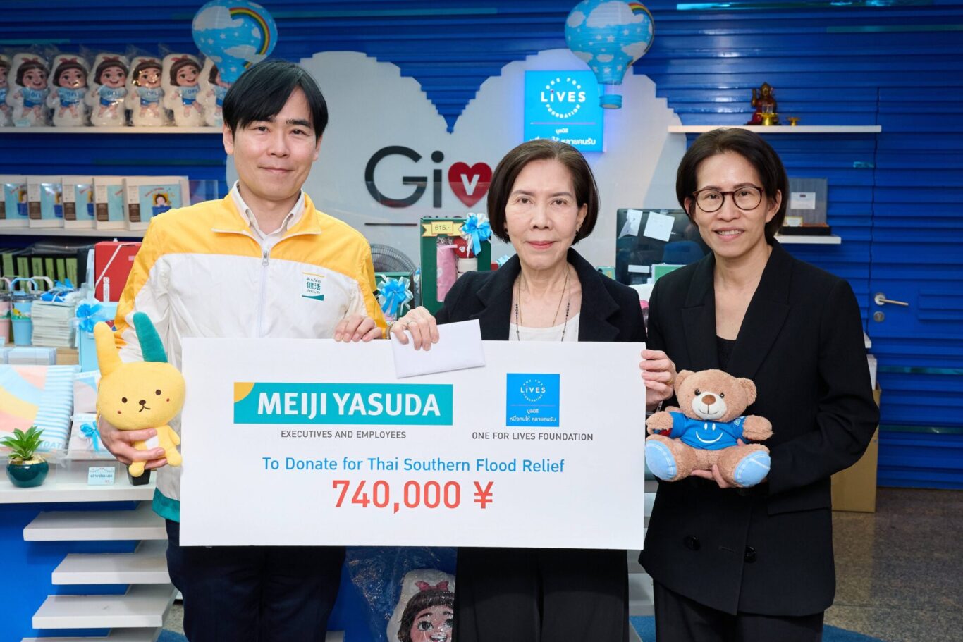 • เมจิ ยาสุดะ ไลฟ์อินชัวรันส์ ร่วมสมทบทุนคณะผู้บริหารและพนักงาน บริษัท เมจิ ยาสุดะ ไลฟ์อินชัวรันส์ ร่วมสมทบทุนช่วยเหลือ ผู้ประสบอุทกภัยภาคใต้ ผ่าน มูลนิธิหนึ่งคนให้ หลายคนรับ จำนวน 740,000 เยน (ประมาณ 146,000 บาท)