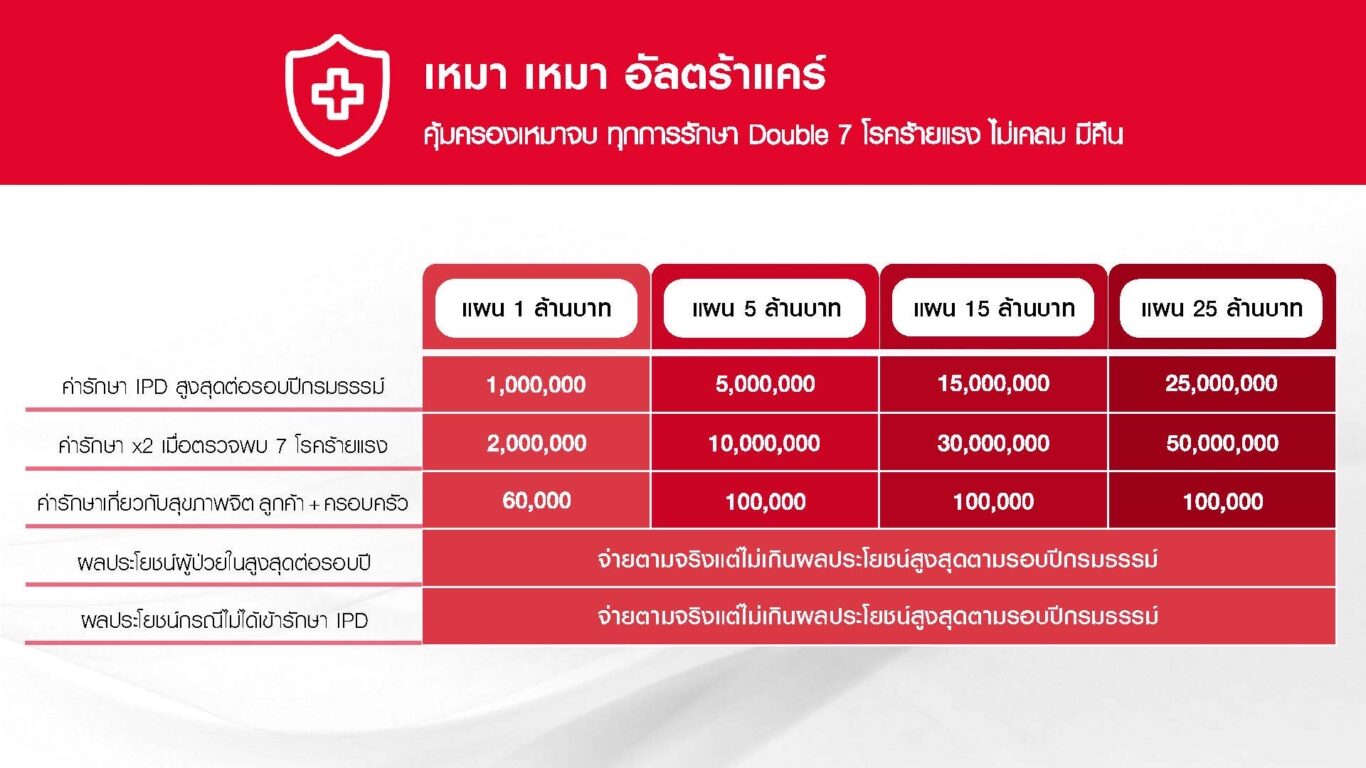 ปีนี้พรูเด็นเชียลฯ ยังคงเดินหน้าส่งแผนประกันสุขภาพเหมาจ่ายที่หลากหลายสู่ตลาด ไม่ว่าจะเป็น เหมา เหมา อัลตร้าแคร์, พรูเบทเทอร์ แคร์, พรูเหมา เหมา ดับเบิล ชัวร์ และแผนอื่นๆที่ออกแบบมาเพื่อตอบโจทย์การดูแลสุขภาพของคนไทยทุกช่วงวัย ผ่านทุกช่องทางการจัดจำหน่ายของบริษัทฯ สะท้อนถึงความพร้อมและความมั่นใจในการมอบความคุ้มครองด้านสุขภาพอย่างต่อเนื่องในระยะยาว ดังนั้น ผู้บริโภคยังสามารถเชื่อมั่นได้ว่าประกันสุขภาพเหมาจ่ายจาก พรูเด็นเชียลฯ ยังคงเดินหน้าและพร้อมดูแลชีวิตคนไทยทุกคนอย่างเต็มรูปแบบ