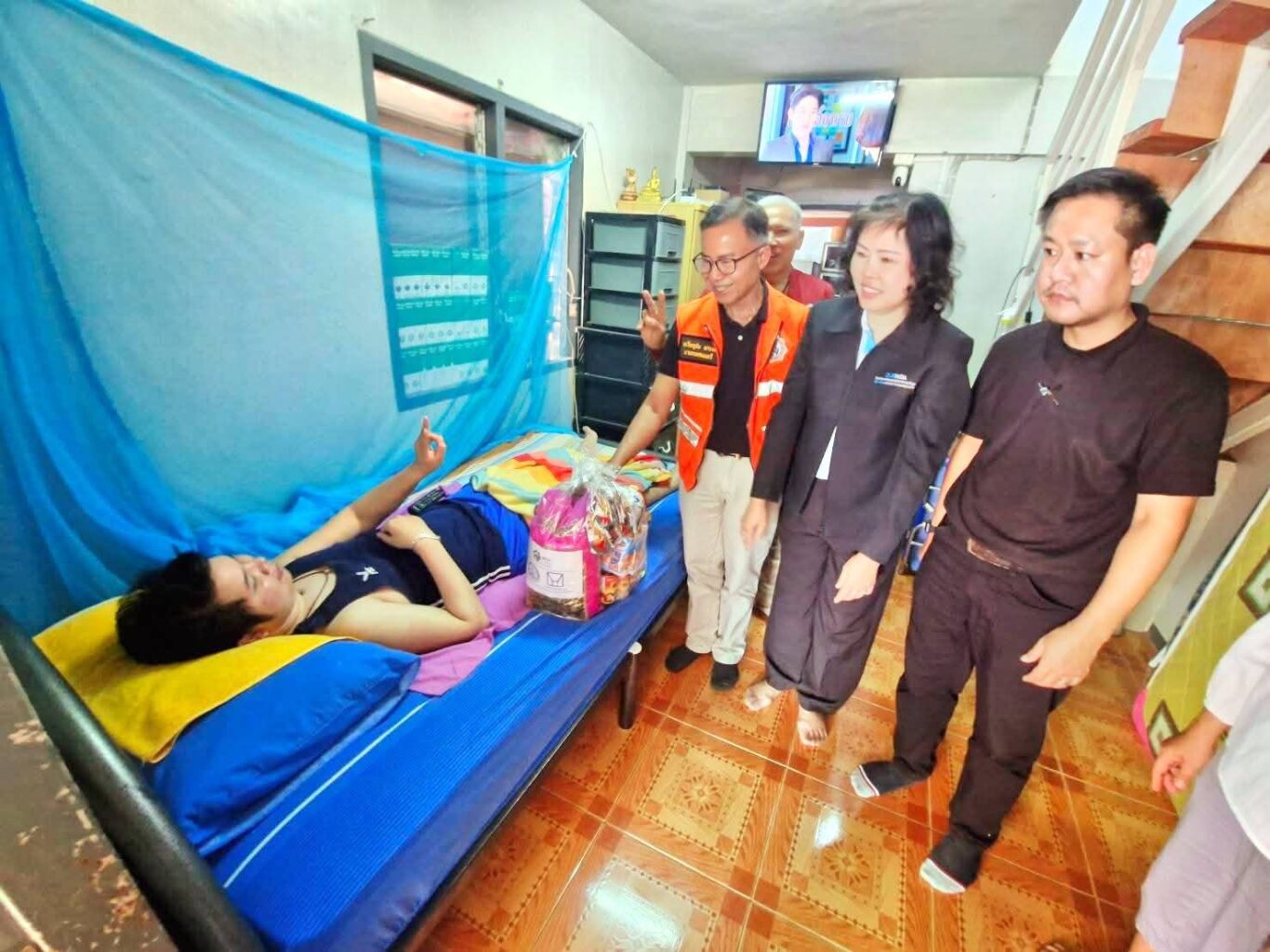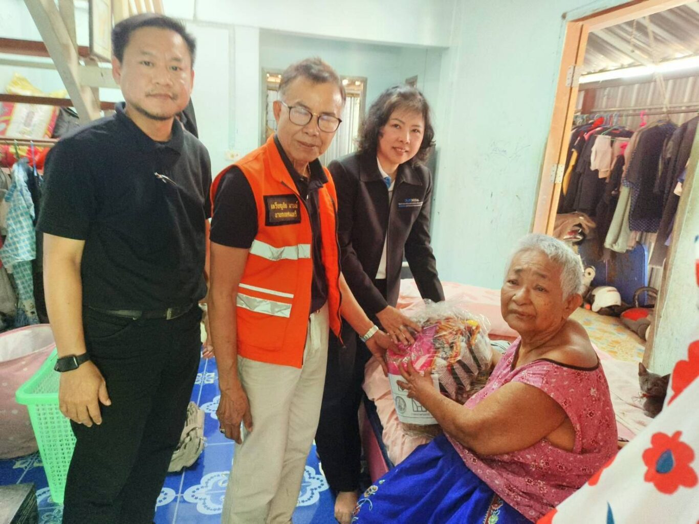 พร้อมกันนี้ ได้ลงพื้นที่เยี่ยมเยียนกลุ่มเปราะบาง ผู้ป่วยติดเตียง และผู้สูงอายุภายในโครงการฯ พร้อมมอบถุงยังชีพบรรจุเครื่องอุปโภคบริโภคที่จำเป็น พื้นที่ละ 140 ถุง รวมจำนวน 280 ถุง รวมถึงพบปะพูดคุยให้กำลังใจ แสดงความห่วงใย และติดตามความเป็นอยู่ของผู้อยู่อาศัย โดยการมอบถุงยังชีพในครั้งนี้ เป็นการช่วยเหลือเพื่อเยียวยาประชาชนภายหลังการอพยพออกจากพื้นที่และได้เดินทางกลับเข้าสู่ที่พักอาศัย เพื่อบรรเทาความเดือดร้อนและลดภาระค่าใช้จ่ายในช่วงเริ่มต้นของการกลับมาดำเนินชีวิตตามปกติ สะท้อนความมุ่งมั่นของการเคหะแห่งชาติในการดูแลประชาชนอย่างใกล้ชิดในช่วงสถานการณ์วิกฤต และเสริมสร้างความมั่นคงด้านที่อยู่อาศัยและคุณภาพชีวิตที่ดีอย่างยั่งยืน